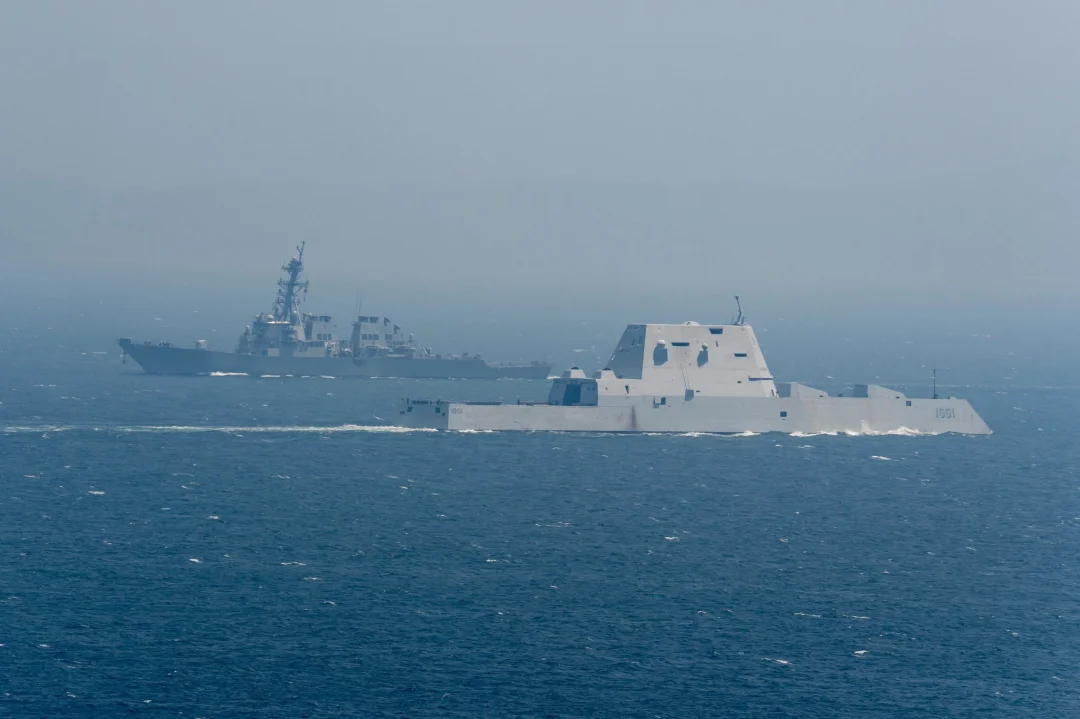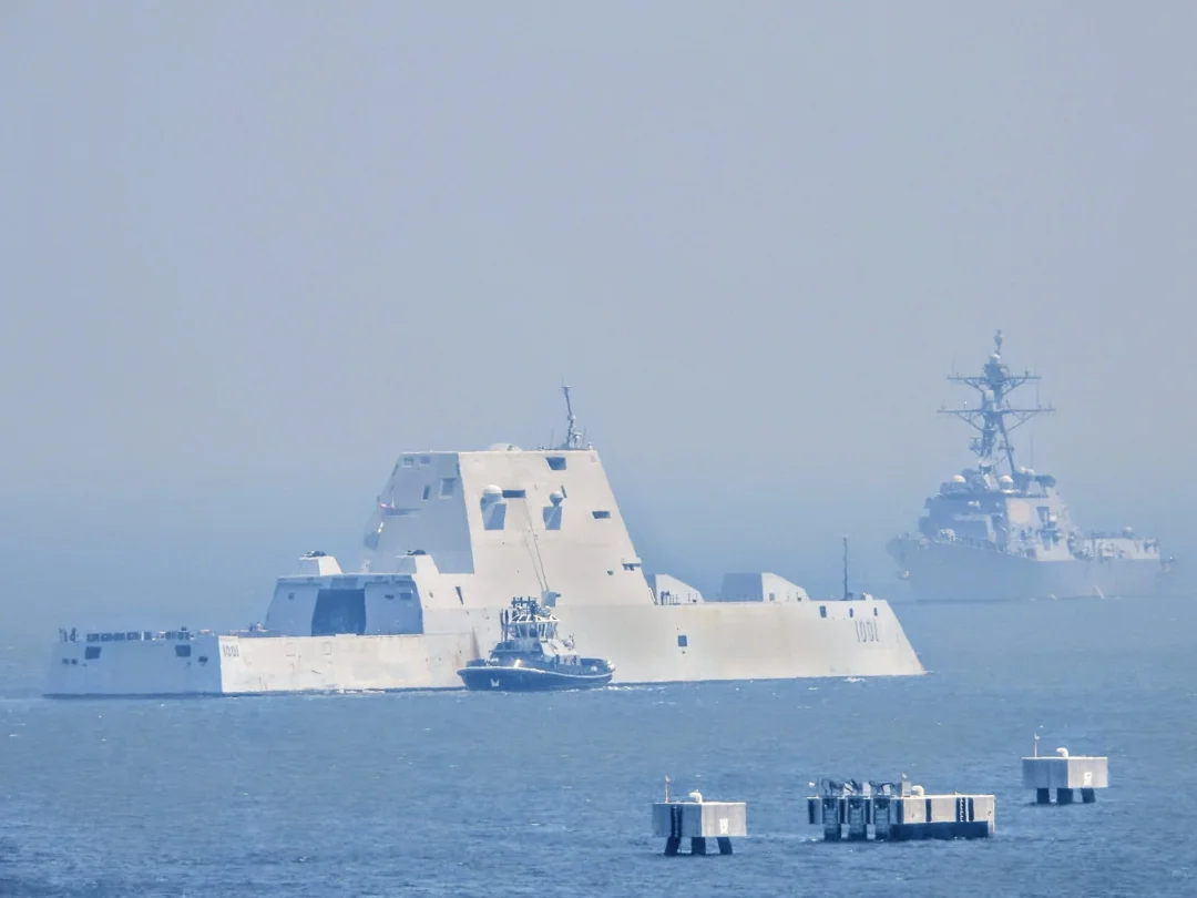 美海朱姆沃尔特级驱逐舰离开日本横须贺