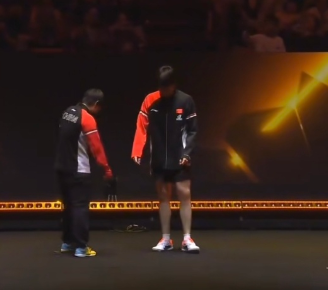 莎莎和头哥颁奖仪式上又出洋相。 主持人喊冠军上台时,两个人摇摇摆摆走上来,相当淡定,站好之后,莎莎好像发现站的位置不对,估计有人提前告诉了要站在某个标志物那儿,于是两个人开始找,发现在后面,然后乖乖的往后退了几步,站定。 哈哈,这俩孩子,随时随地给咱提供笑料,太可爱了。