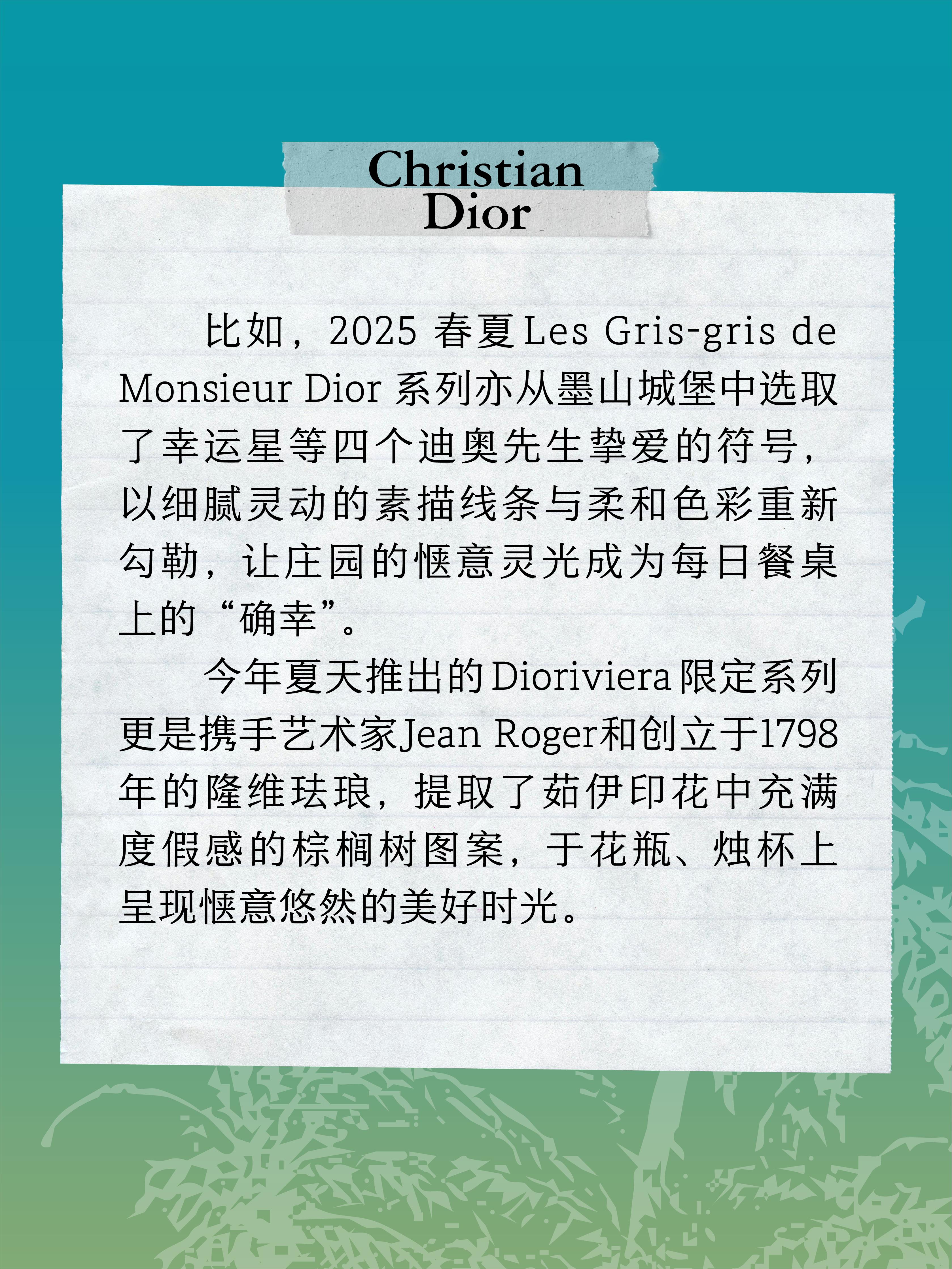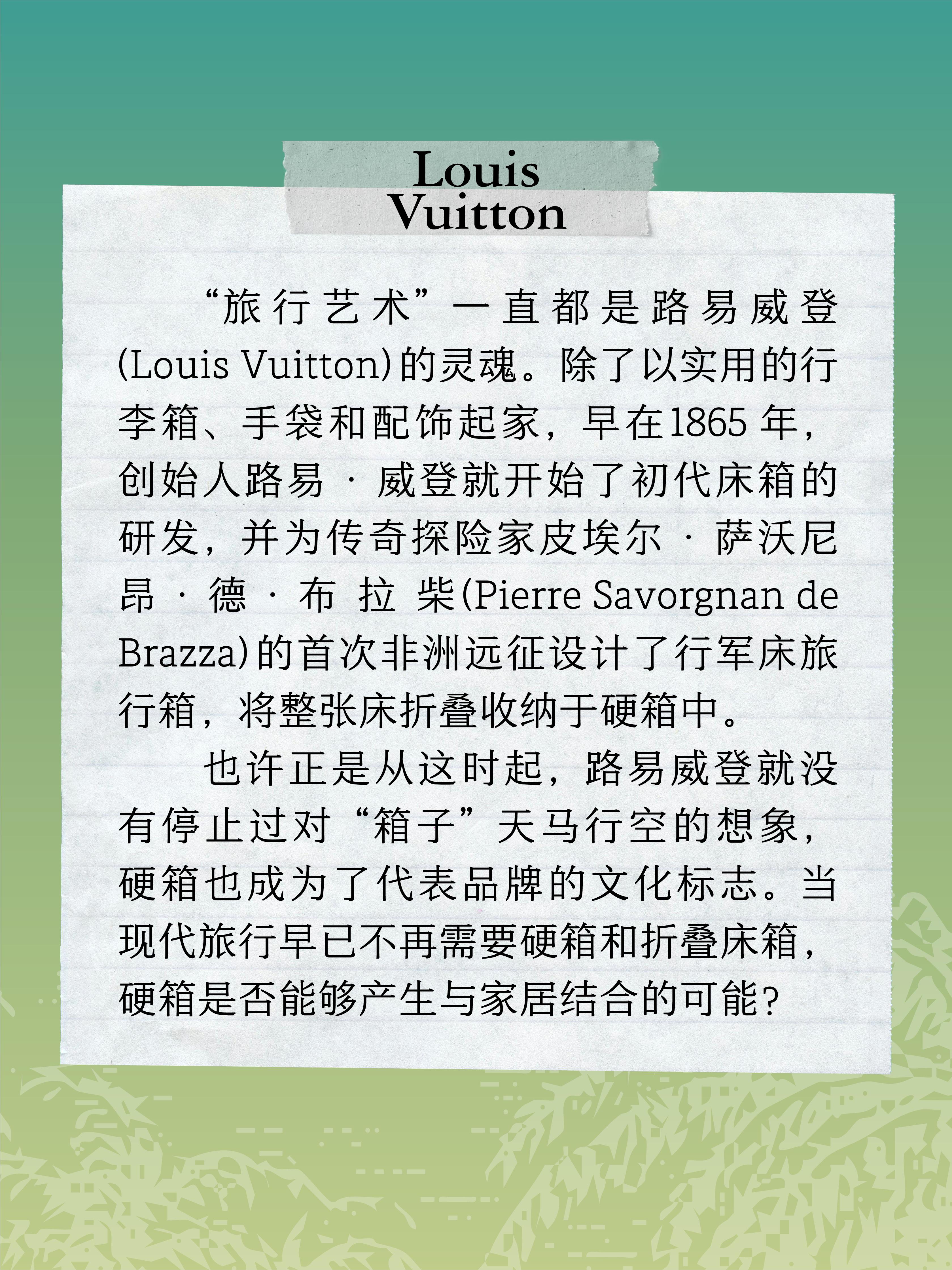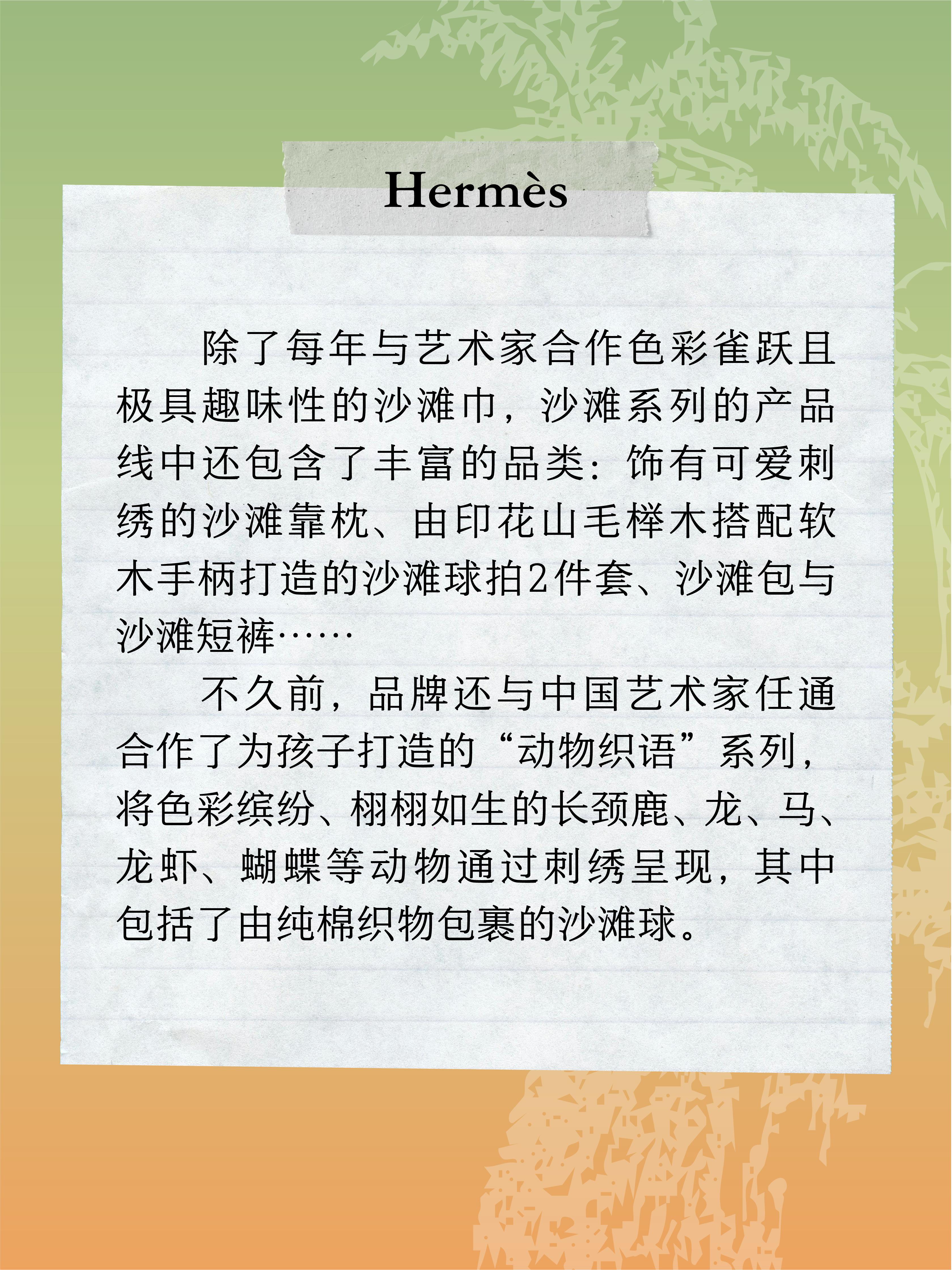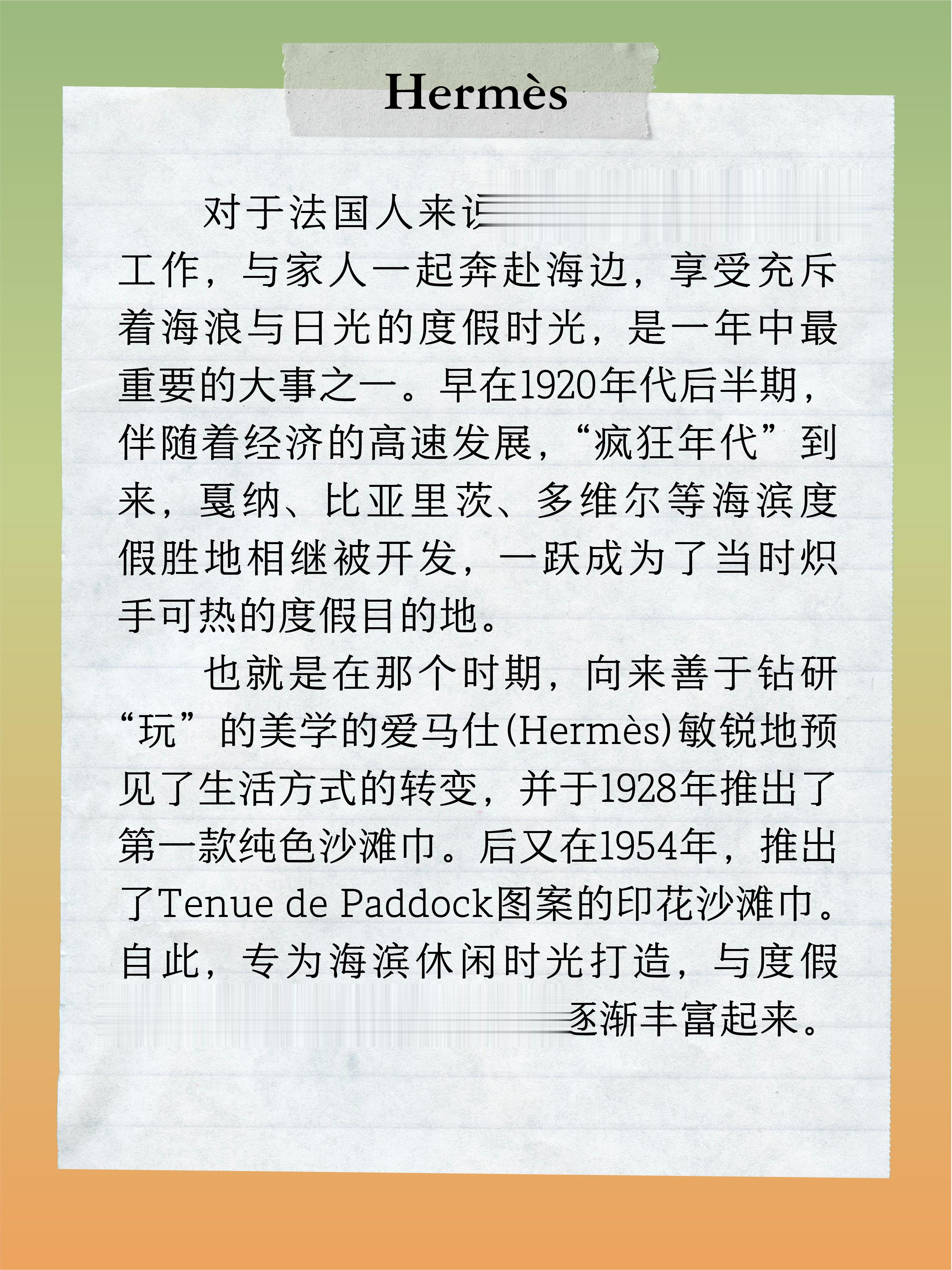 会玩才会设计!“玩”出来的经典度假美学。伴随着当代设计的兴盛,除了日常生活所赋予的灵感,充斥着阳光自然,悠然自得的度假时光同样是设计师们永恒的创意源泉。长假将至,与DECO一起探索那些藏在美好单品背后的度假故事。 从路易威登对旅行硬箱的不断演绎,到Dior Maison经典的庄园自然灵感。从爱马仕沙滩系列的玩乐美学,到杰尼亚将自然精神融入旅途步履——设计师以不同方式诠释假日美学,在时间与空间之间,留下松弛自由的美好想象。