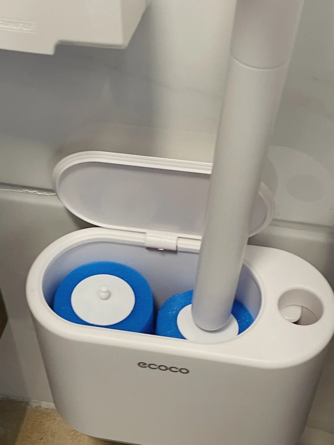 用自带的无痕贴挂墙上 一点都不占地~ 再也不用洗马桶刷了[捂脸R]干净卫生 一按就可以丢掉用过的 清洗液都不需要另外买[偷笑R]