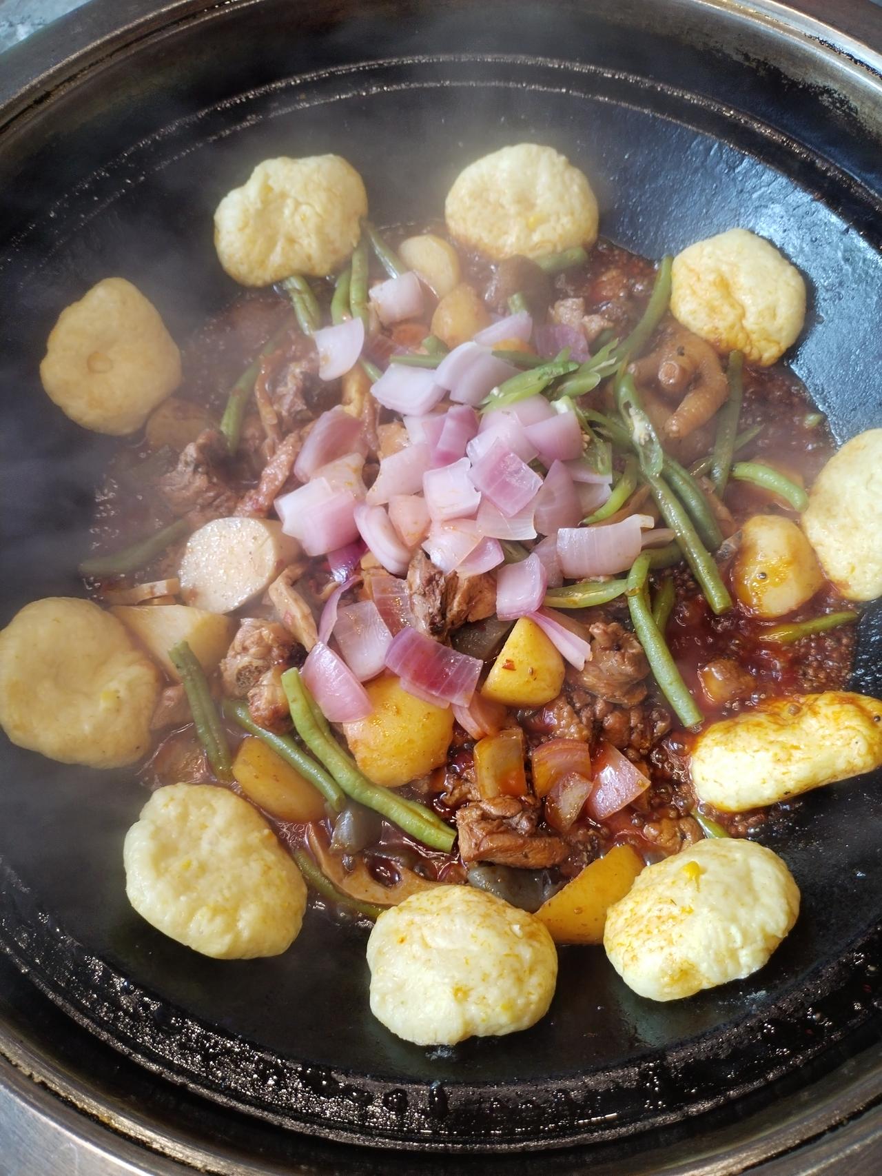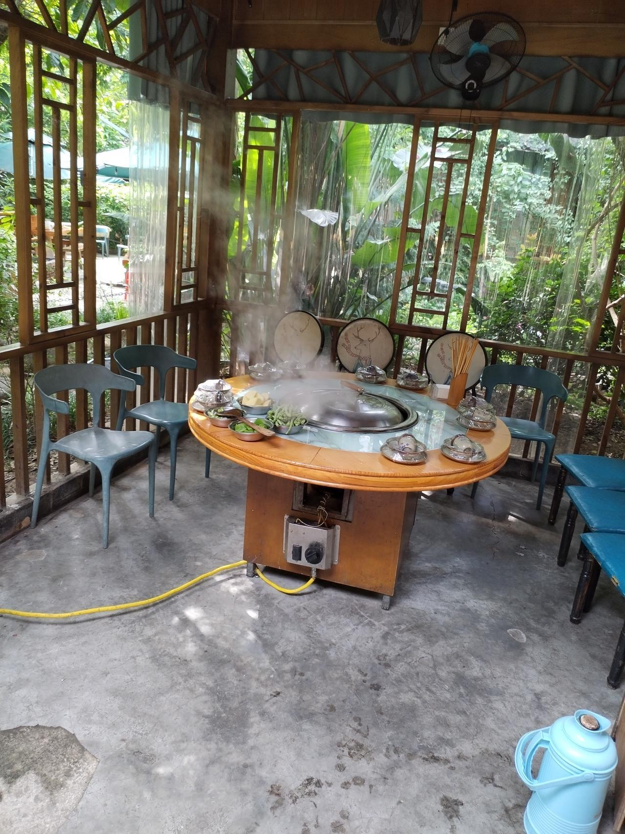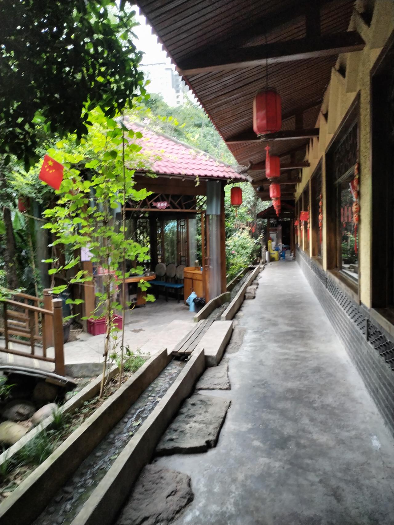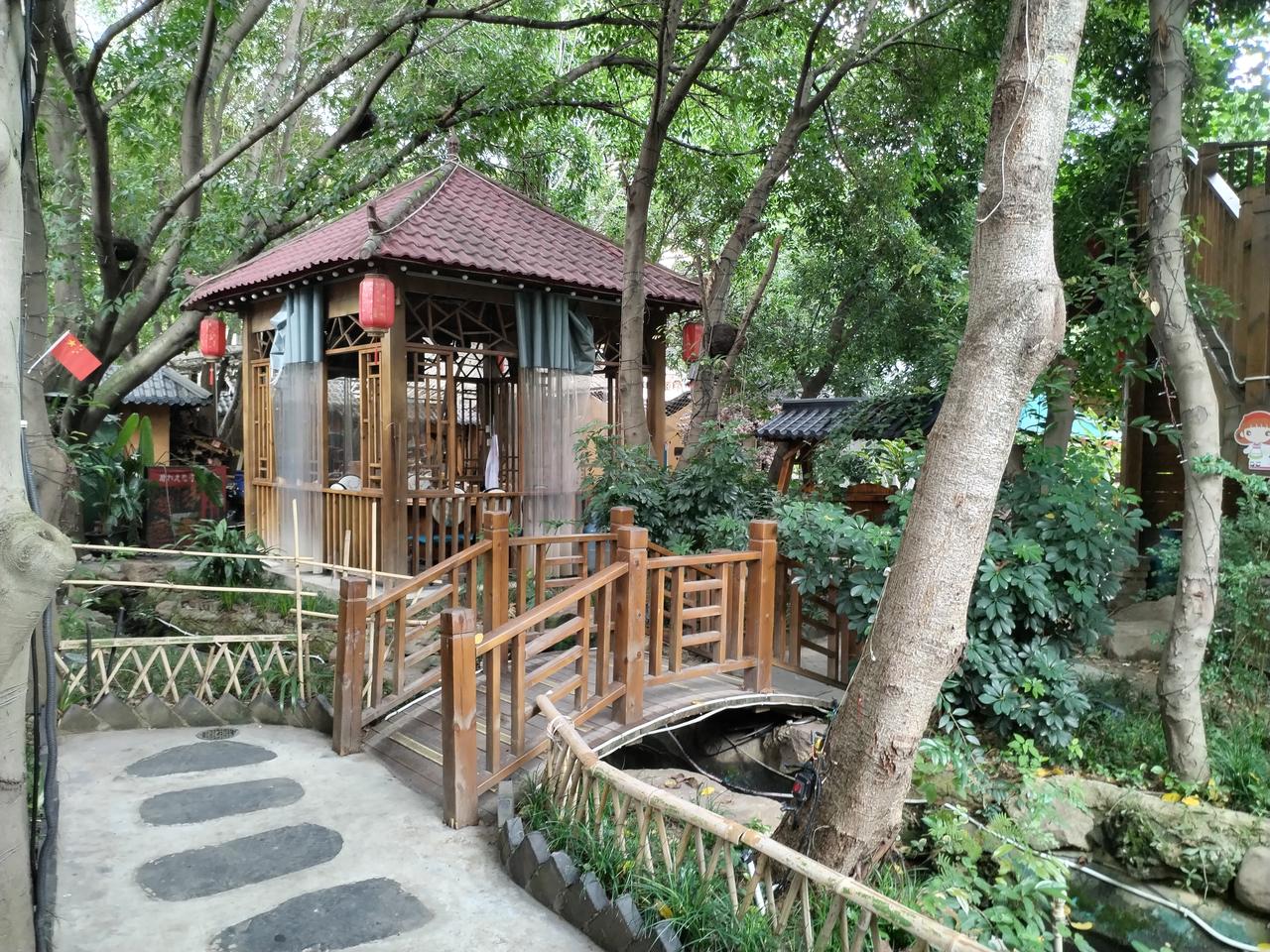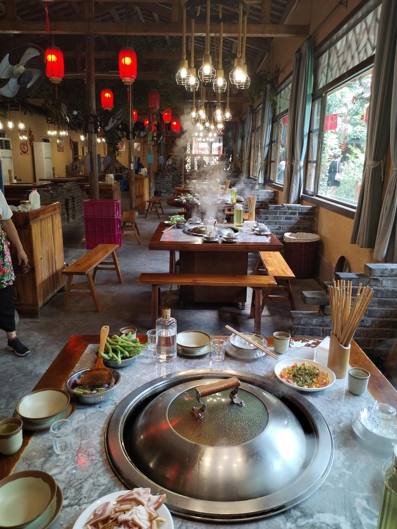 国庆佳节期间,绵阳市郊游,赏田园风光。去农家乐,品尝地道的特色美食。 接近生态的农家乐,树木遮阳,花草芳香,环境优美自然,小桥流水,楼亭餐桌上品尝别具风味的地锅菜。 土鸡,五花肉,土豆,萝卜,豆角等食材,玉米祸贴饼子一锅出。吃的实惠,大饱口福。