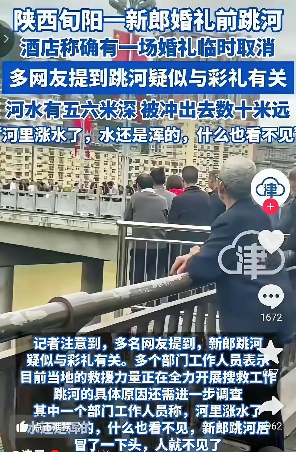 陕西旬阳发生的新郎跳河事件,已真相大白,只因女方临时加三万下车礼。
