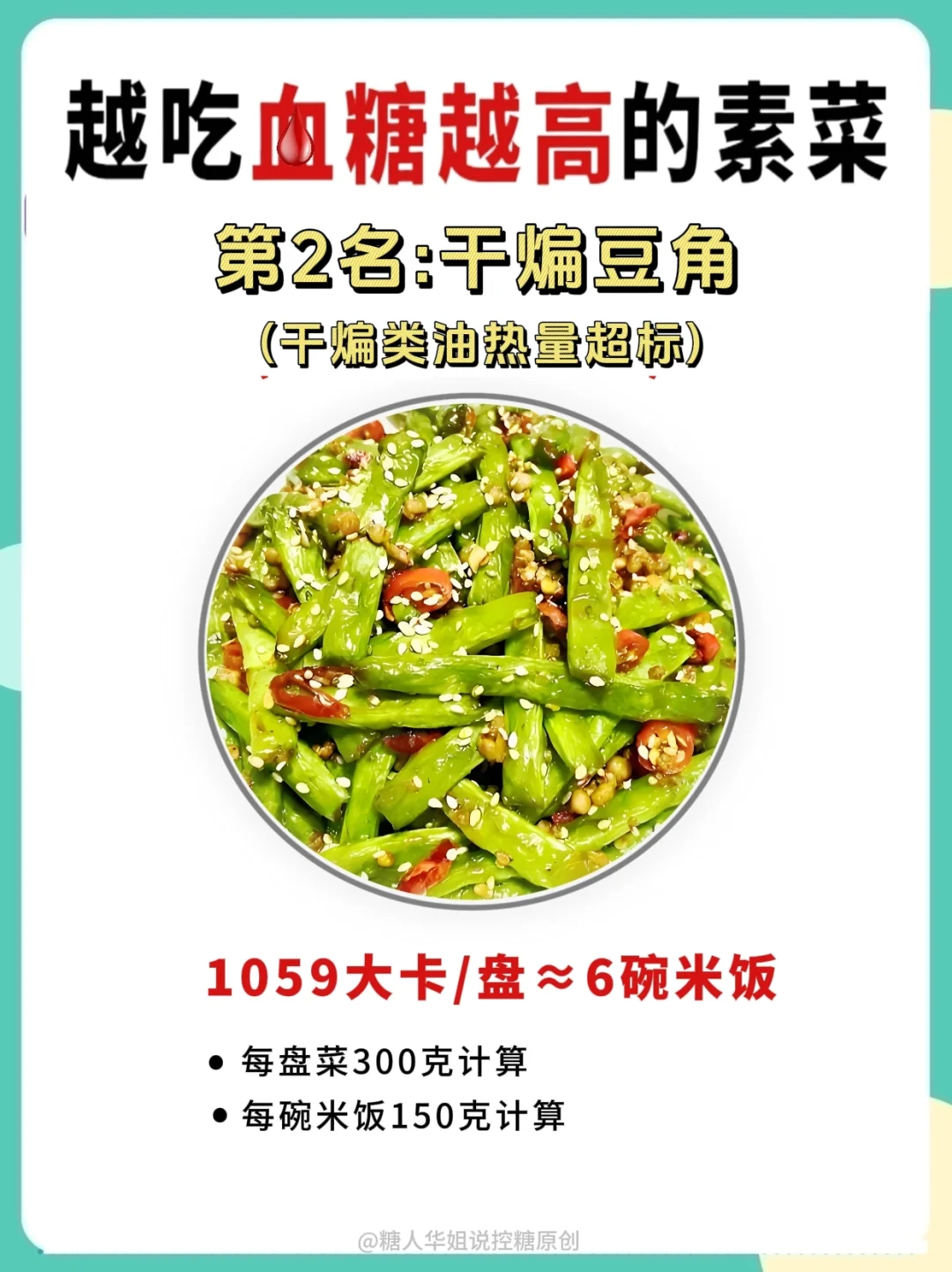👉豆角在干煸时需要大量的油脂,也可能会加入较多的盐、糖或调味品,尤其是要在高温时制作,所以它不利于控糖。