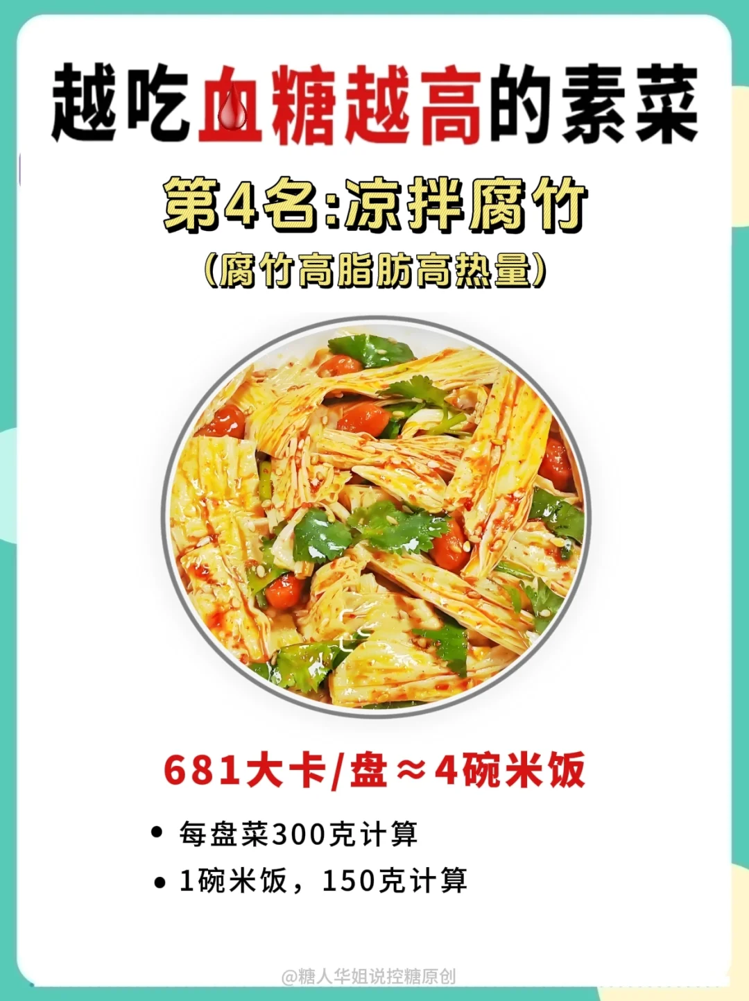 👉腐竹是高脂肪,高热量食物,凉拌时可能会添加大量的调味品,不利于控糖控体重控压。