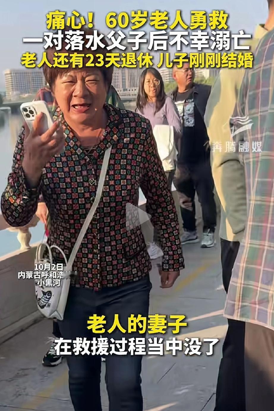 痛心! 近日,内蒙呼和浩特小黑河一位60岁老人勇救一对落水父子后不幸溺亡!老人还有23天退休儿子刚刚结婚! 好不容易熬到快退休,却为救别人意外去世,牺牲了自己抛下妻儿,见义勇为挽救了别人的家庭,当地政府给老人发放了1万元的慰问金,最悲哀的是老人的妻子后半辈子注定孤独无依,被救者父子把老人的家属当自己最亲人来对待吧!救命之恩当湧泉相报,舍己救人的义举不是每个人都能做到,可老人做到了,如果没有意外老人马上退休每月几千块钱的退休金完全可以与妻子逸享晚年,可这一切都成泡影,请被救家庭好好善待老人家属,愿老人一路走好家人节哀!
