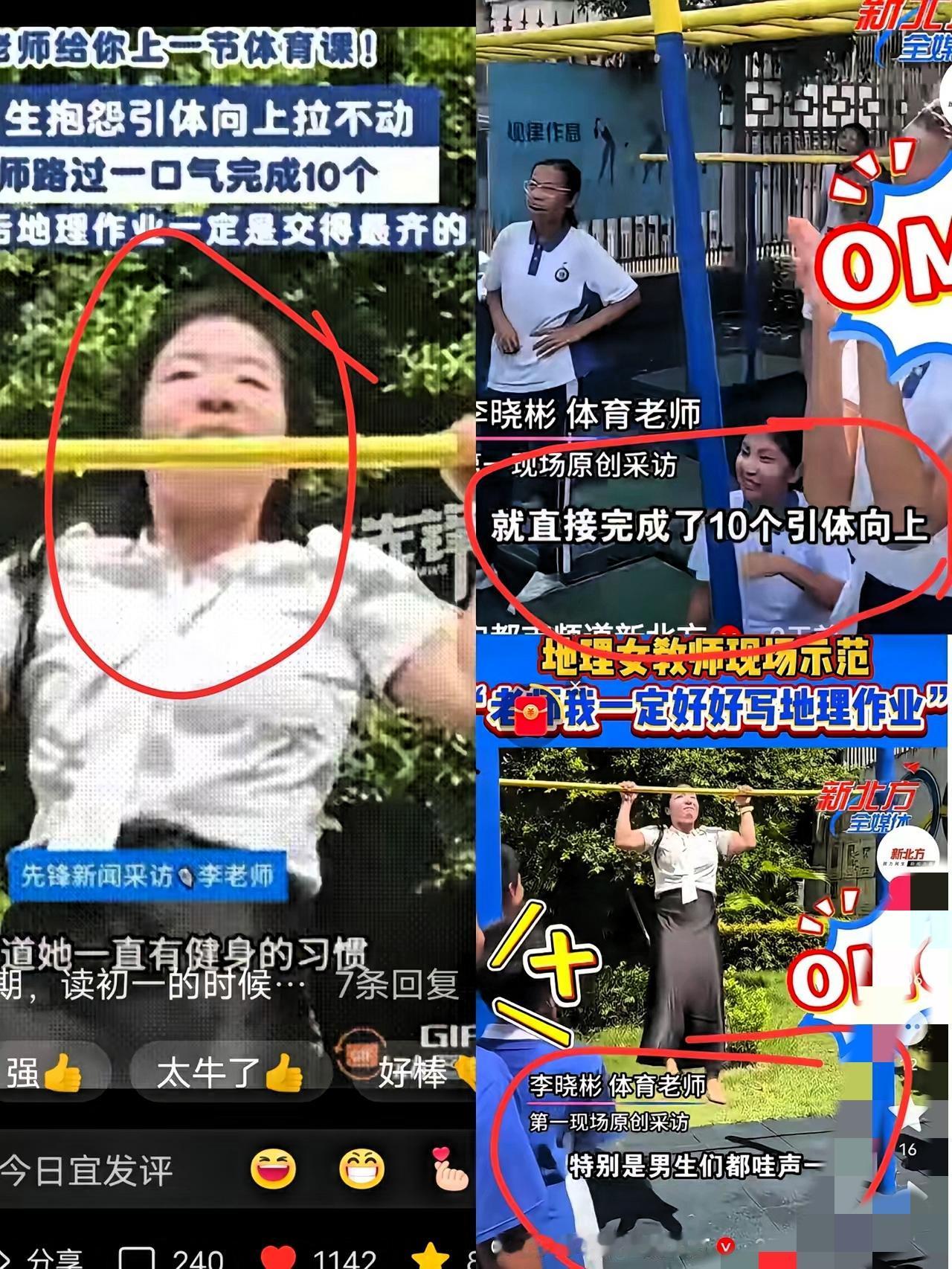 别再说引体向上难!深圳这位地理老师用10个动作, 戳破了多少人“躺平”的借口 谁能想到,打破学生“引体向上太难”魔咒的,不是体育老师,竟是路过的地理女老师? 深圳体育课上这一幕太绝了——学生们对着单杠犯怵,文静的地理老师直接上手,轻轻松松干下10个引体向上,网友直呼“人不可貌相,这体魄藏得也太深了!” 其实哪有什么“天生厉害”,不过是人家把锻炼当成了日常。多少人跟学生一样,总把“太难了”挂嘴边,却忘了所有“轻松”背后,都是日复一日的坚持。引体向上练心肺、强手臂、壮背部,每一个动作都是汗水堆出来的,光靠嘴说“想练”,永远只能当看客。 这位老师最牛的不是能做10个引体向上,而是用行动告诉所有人:所谓“不可能”,大多是自己给懒惰找的借口。比起苦口婆心的教导,这种“我做给你看”的示范,才是最戳心的教育。 你们身边有没有这种“隐藏大佬”?或者你为了突破某个“不可能”,偷偷付出过哪些努力?来评论区聊聊!