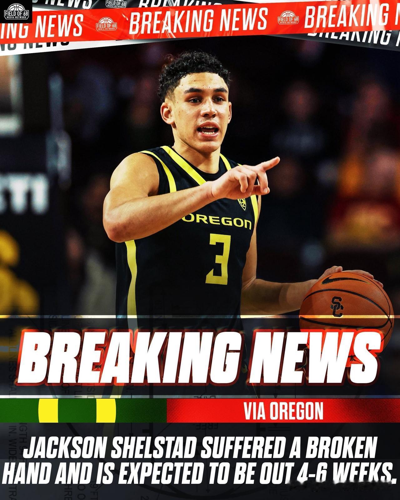 俄勒冈控卫JacksonShelstad由于手部受伤将缺席4-6周,大二赛季场