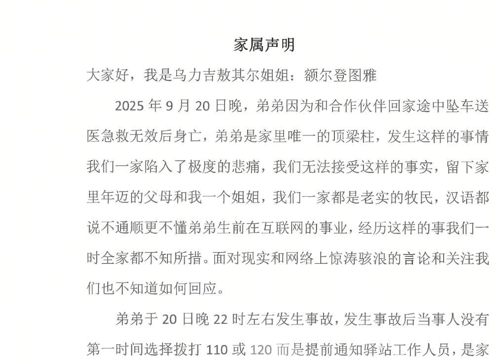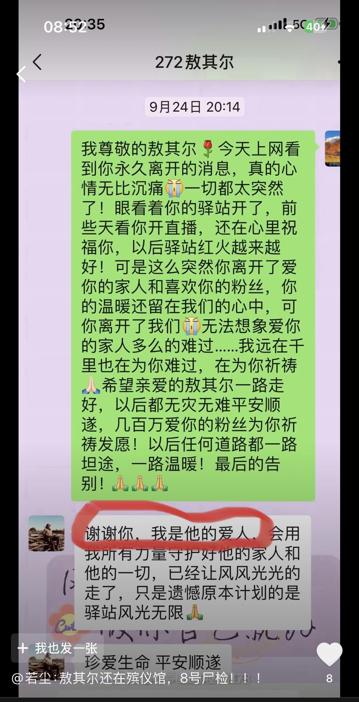 内蒙古网红敖其尔坠车离世的当天,就是他驿站大本营开业的日子!那天一早他就发布了长视频记录,当时他的心情很不错,只是,谁也没想到当天晚上他就出事了! 据其女友交代称:当晚二人开着一辆商务车回家,她是驾驶人,敖其尔则坐在后排。在这个过程里二人发生了激烈的争吵,事后敖其尔就跳车了…… 悲剧是9月20日晚上10点左右发生的,事后,敖其尔经抢救无效身亡,他的遗体至今存放在殡仪馆。 敖其尔的亲人怎么都想不通,他生前一切如常,还在积极为自己的事业奋斗,怎么就会在开业的当天突然跳车了呢? 眼下,他的父母家人已经崩溃不已,敖其尔是家里唯一的顶梁柱。父母年纪很大了,连汉语都不太会说,更不懂经营他留下来的产业……真的不知道,她们要如何才能熬过这个坎?[祈祷][祈祷][祈祷][祈祷]