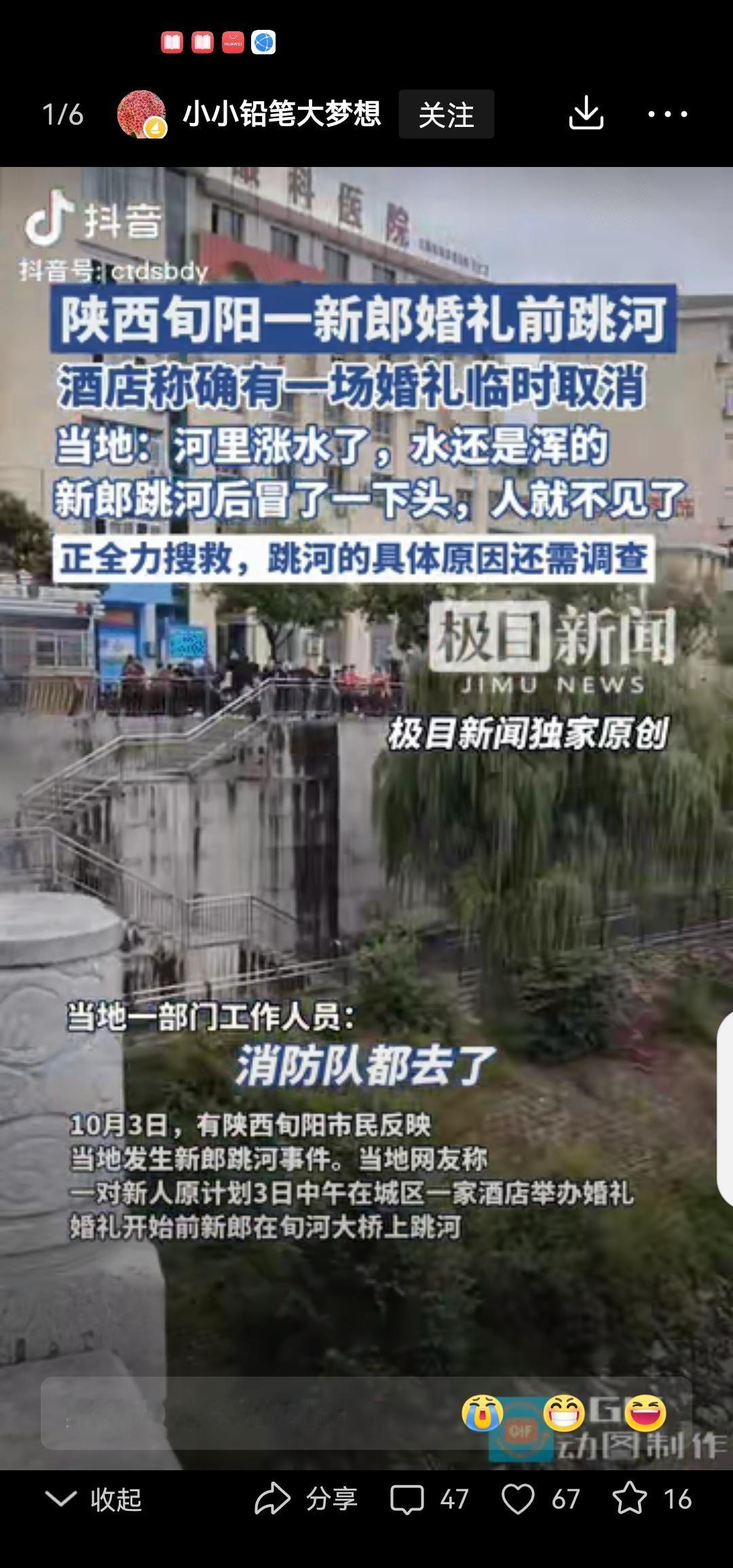 太让人揪心了!陕西旬阳一新郎接亲时,离酒店就差两分钟,竟因新娘家要2万下车费跳河了。 家里为办婚礼已掏空家底,彩礼就几十万,再拿不出这钱,双方僵持不下。新郎一时冲动跳了河,河水湍急,搜救难度大,恐怕凶多吉少。 本是大喜日子,却成悲剧,新郎母亲悲痛入院。婚姻不该被彩礼绑架,这陋习真该改改了!