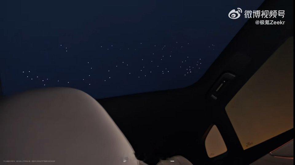 全新001的星空顶实际上是在一个电致调光EC天幕上做的星空。