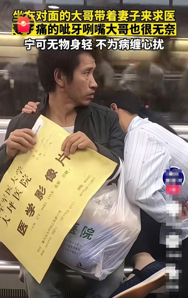 坐地铁的时候看到一对中年夫妇,看到大哥手里的医学CT影像片,就知道是来看病的,妻子痛得呲牙咧嘴的靠在大哥的肩膀上!此时的大哥左顾右盼,目光呆滞,满眼的无奈!人生最痛苦的莫过于此了,看着自己心爱的人痛苦难耐,自己却爱莫能助! 看到这个画面,突然有一种莫名的同情和感动!隔壁家伯母,三年前查出来得了宫颈癌,每次去化疗,放疗,靶向治疗,伯父都会小心翼翼的陪伯母去! 没有得病的时候,一家人在一起其乐融融,过着平凡人幸福的小日子!如今生病了,一家人再也没有往日的欢声和笑语! 我们老百姓最大的幸福就是,不求大富大贵,只求无病缠身!有的病情,治疗周期长,费用高,让一个本身就不宽裕的家庭更加雪上加霜!