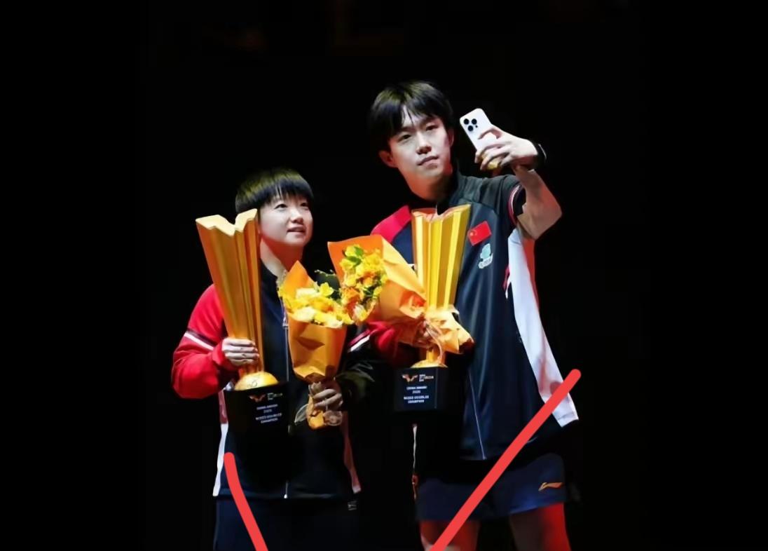 这张颁奖照太绝了! 莎头组合的默契藏都藏不住嘞✔ WTT中国大满贯颁奖礼这张抓拍直接封神!大头举着手机认真记录,莎莎对着镜头笑得眉眼弯弯,身边金色奖杯和花束衬得两人格外亮眼。 打赢3比0的硬仗夺冠,他们的庆祝从不是刻意摆拍。这种赛场下自然流露的合拍,才是“莎头组合”最圈粉的地方——毕竟能一起赢、还能一起笑的搭档太难得了。