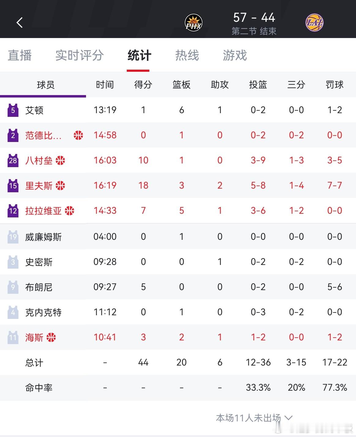 湖人44-57太阳,如何评价这个上半场?太阳vs湖人