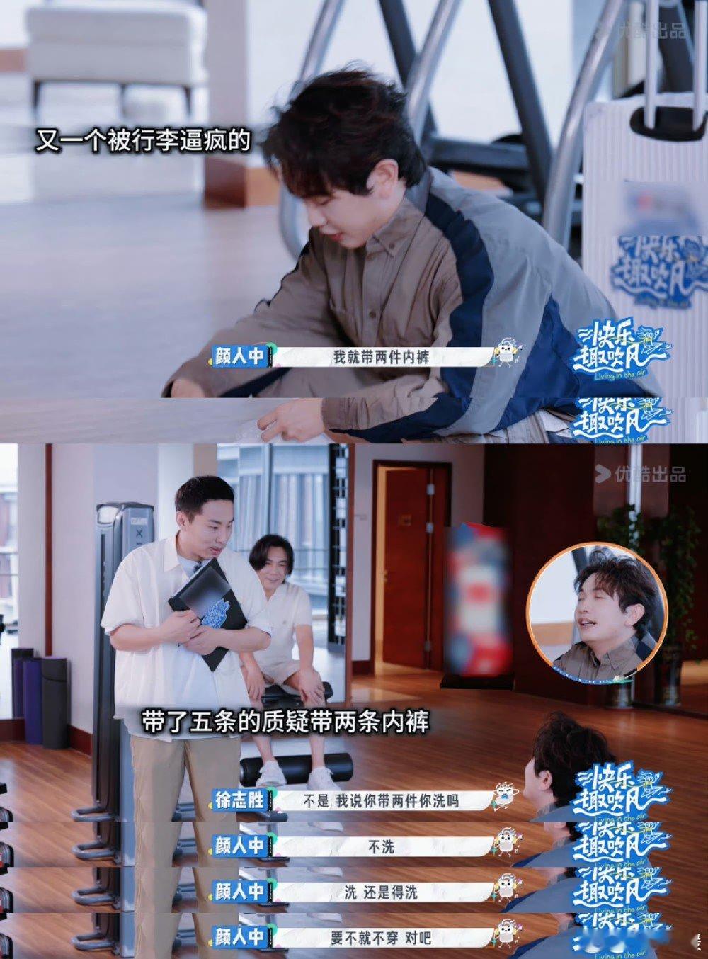连内裤都不让艺人带的癫综出现了 这综艺太逗,打着旅游旗号,上演内裤挑战赛。大男孩们的脸就靠内裤保住啦,哈哈,笑不活了,这设定也太有创意!快乐趣吹风
