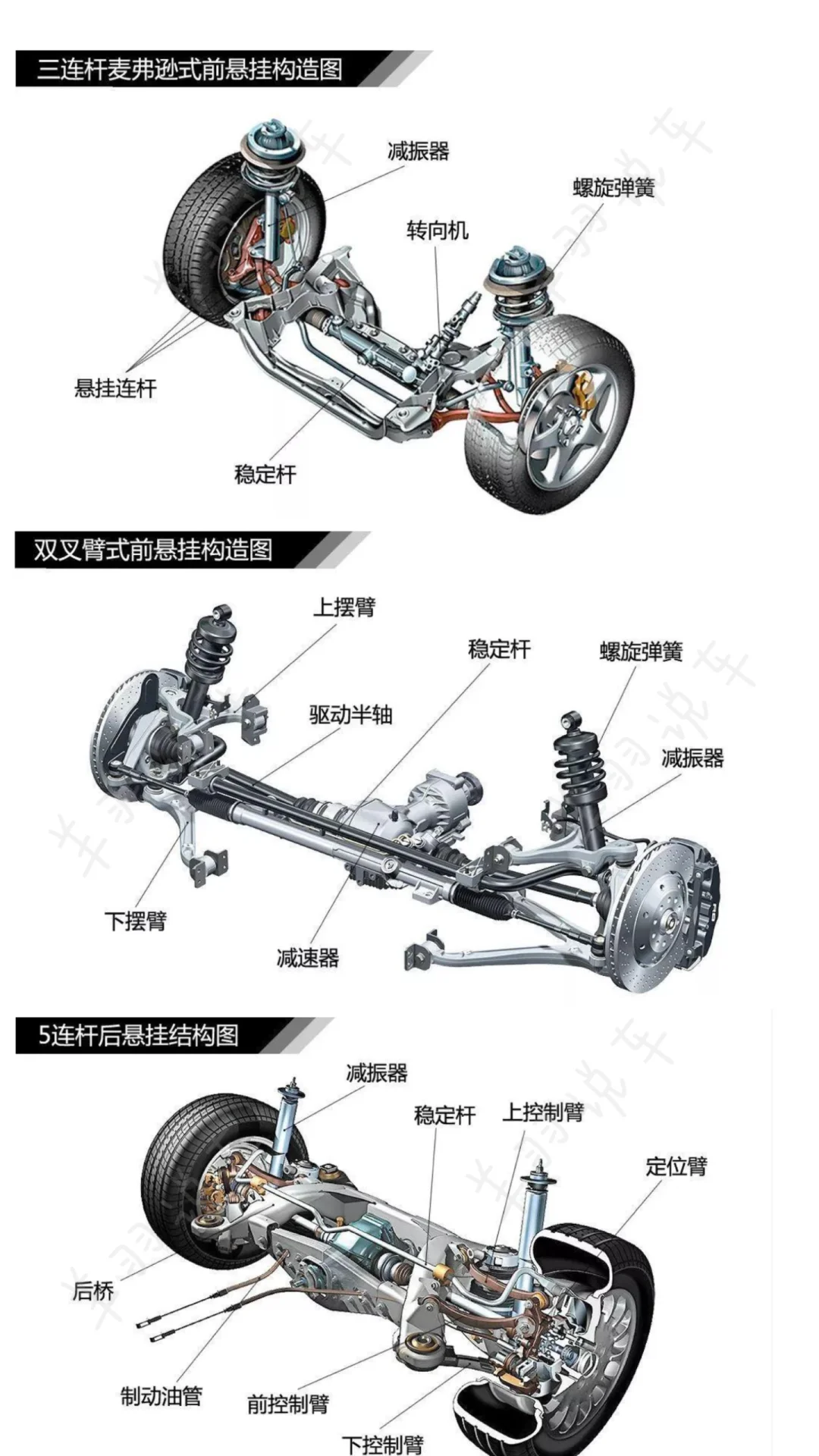 * 车轮/轮胎: 与地面接触,提供驱动力、制动力和舒适性。