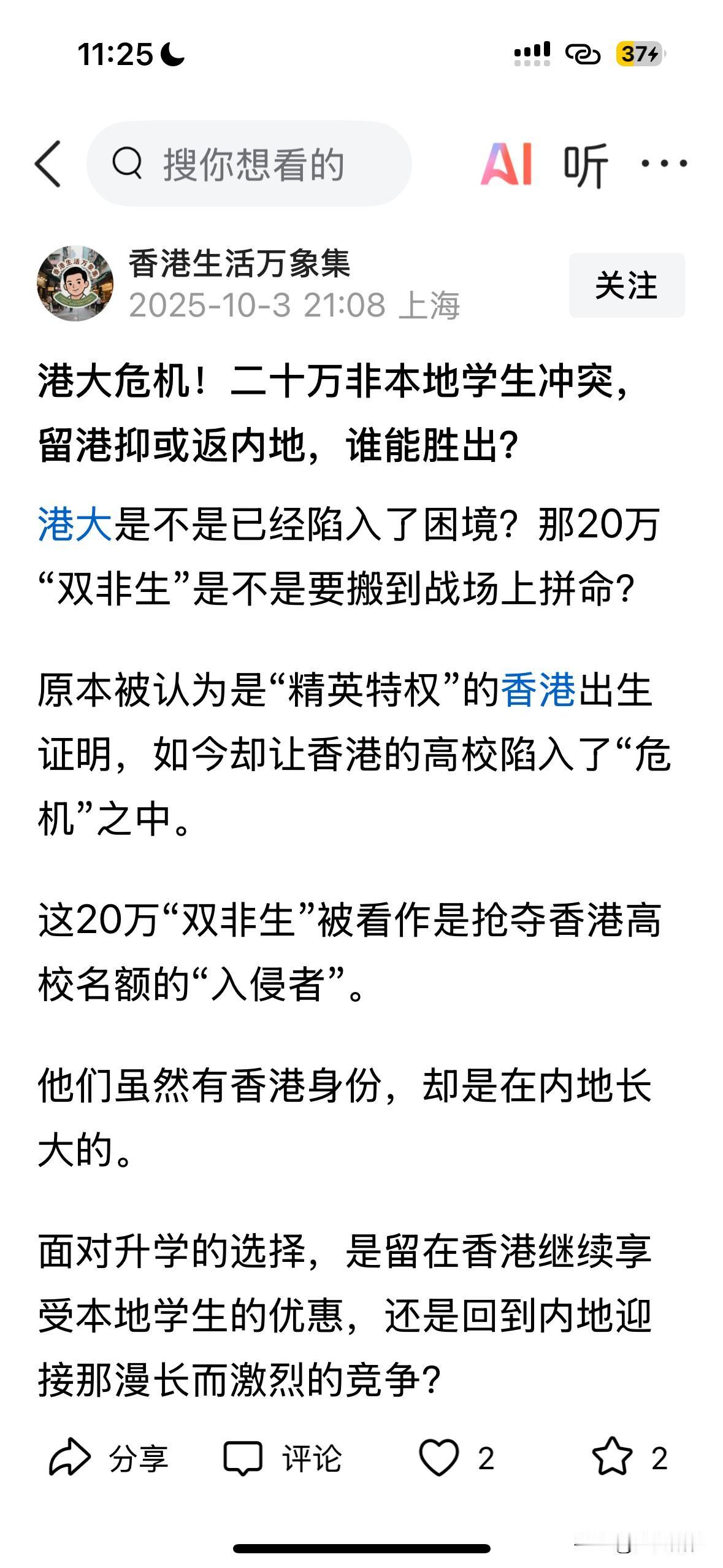 朋友小孩今年考上港大,争取到了一个一年期限的宿舍位,但是环境很糟糕,9月份的时候,每个周末她女儿都回广州的家里。这个国庆朋友就去香港看房子,准备给女儿租房子。