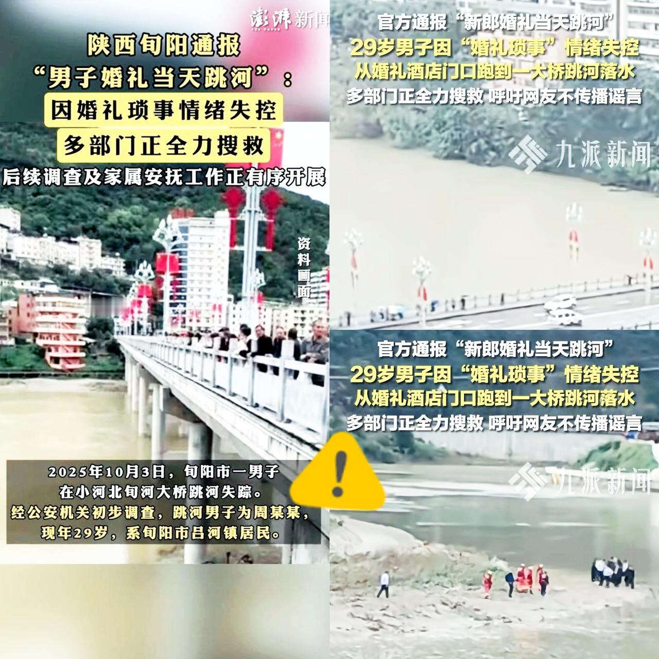 婚礼当天跳河的男子, 手里还攥着母亲塞的热鸡蛋, 29岁的周某某,从旬阳的婚礼酒店跑向旬河大桥时,口袋里装的不是戒指,是父母凑彩礼的欠条, 亲戚电话翻了三页,邻居张叔那五千块是卖老母猪凑的,结果女方临时要的下车费,偏偏就是他家借遍了也凑不齐的数。 有人骂他心理脆弱,有人怪女方心狠,还有人说婚礼虚礼害人,可没人看见,他跑向大桥时,怕的不是自己没面子,是再也不忍心让爹妈为了他,再跟人低一次头,再卖一次养老的老母猪! 那热鸡蛋是妈早上塞的,说“垫垫肚子,别慌”,结果他慌的,是怎么对得起爹妈这一辈子的心血。 别再说什么“这点事至于吗”,压垮人的从不是最后一根稻草,是那一根根稻草堆起来,压得人喘不过气的重量! 换作是你,站在酒店门口,一边是等着开席的宾客和凑不齐的钱,一边是为你掏空了的爹妈,你会怎么选?新郎跳河 旬阳彩礼