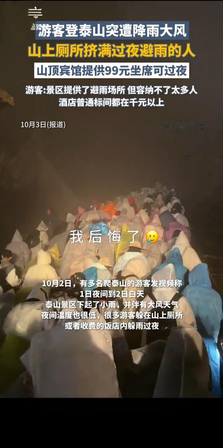 “我后悔了!”这句来自泰山雨夜的感叹,道出了无数游客的心声。10月2日,暴雨突袭