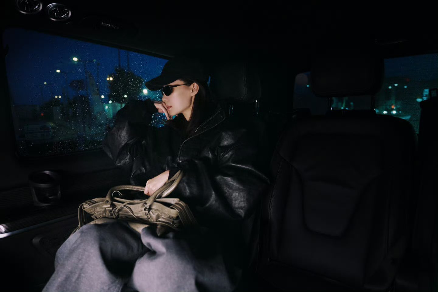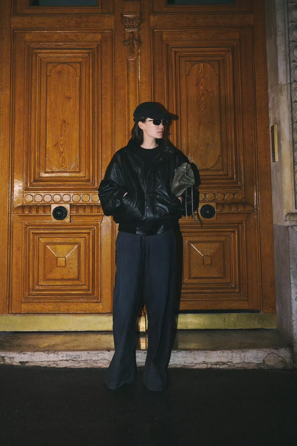 张小斐~~张小斐[超话]张小斐巴黎到达图 皮衣尖头鞋