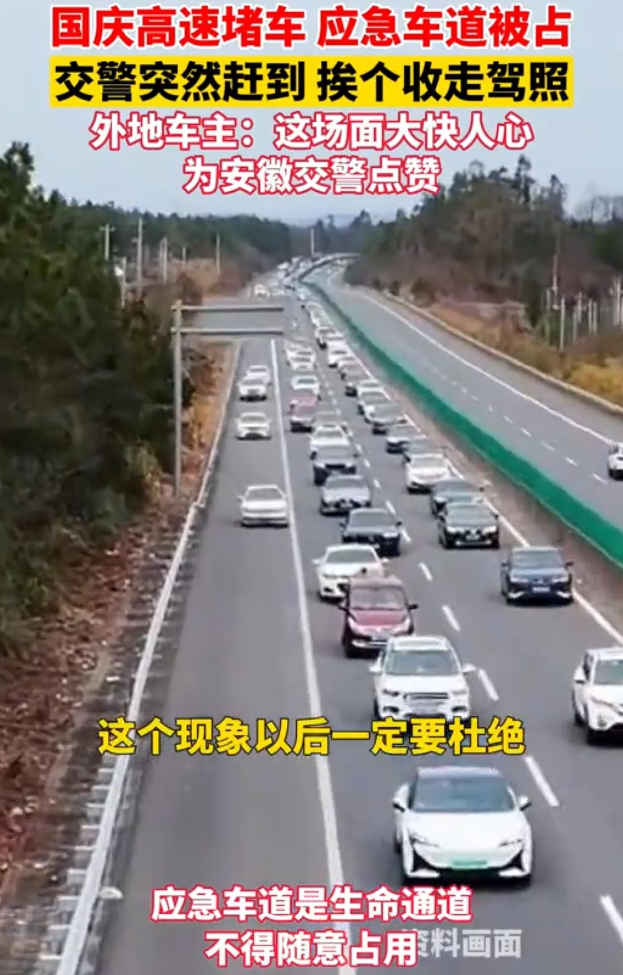 宝子们,国庆假期本来该开开心心出去玩,结果在安徽淮南高速上,有些司机的操作真是让人血压飙升! 当时路上堵得水泄不通,大家都在乖乖排队,可偏偏有人等不及,一脚油门就把车开上了应急车道。那可是救命的通道啊,救护车、消防车都得靠它走,你一占,救援车辆全得卡在后面,耽误一分钟都可能出人命! 10月1日那天,淮南交警直接出手,一口气扣了37本驾照。干得漂亮!就得让这些违规的人长长记性。 你们知道吗?今年国庆期间,全国因为应急车道被占,导致救援延误,最后死了17个人。这数字背后,是17个家碎了。想想救援人员被堵在路上,眼睁睁看着生命在眼前消逝,那是什么滋味? 平时你们开车有没有遇到过这种人?反正我是见过不少,就为了快那几秒钟,脸都不要了。要我说,罚得好,还得再严一点!应急车道是生命线,不是给你抄近道的。每个人都守规矩,关键时候才能救自己、救别人。 评论区聊聊,你们怎么看?一起说说怎么守住这条生命线吧!