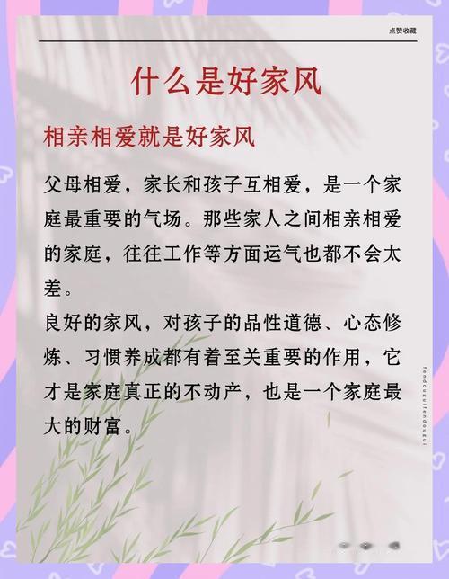 家风好的家庭,似温暖港湾,长辈慈爱、晚辈孝顺,互敬互爱氛围浓;成员间诚信友善、正