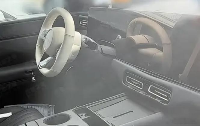 相较于外观造型,内饰也是采用了全新的设计,中控台由贯穿式一体大连屏组合而成,相较于问界M9、尊界S800等车型的传统分体式屏幕布局,这样的设计也更加吸引年轻人的目光。只不过,这么大的屏幕,边框处理得怎么样?也还是值得大家期待。同时,方向盘采用橄榄形非对称的设计,上面也还写着“智界”的英文标识。但对于这个设计,目前据知情人透露,仍为临时测试件。毕竟,作为一款MPV,配上这么小的方向盘,也确实显得有些不搭。