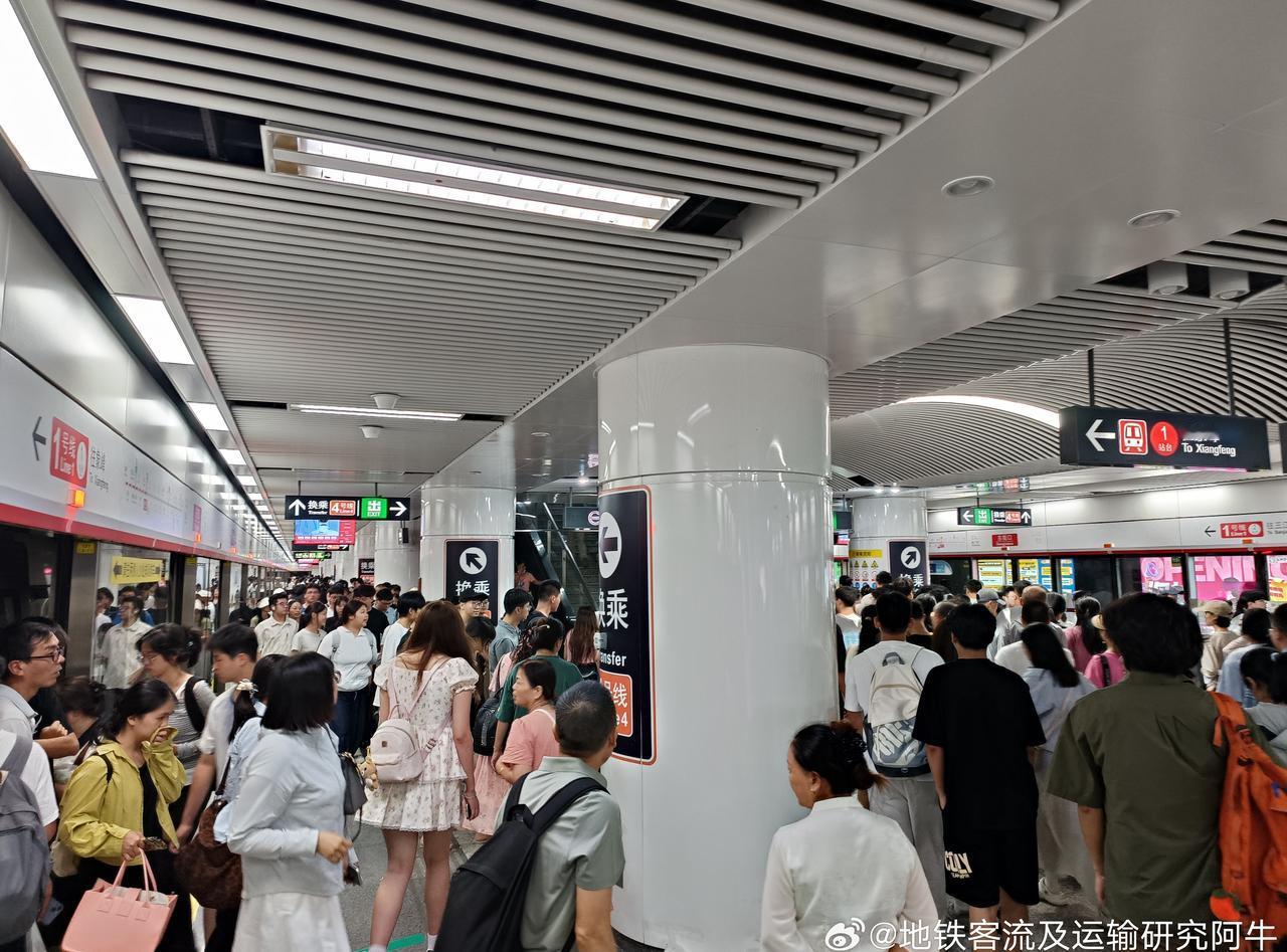 福州地铁网友:2025-10-04(国庆假期第四天,全网免费)11:30左右福州地铁1号线南门兜→东街口下车客流(p1-4),换乘4号线东街口→西门区间客流(p5-6)。