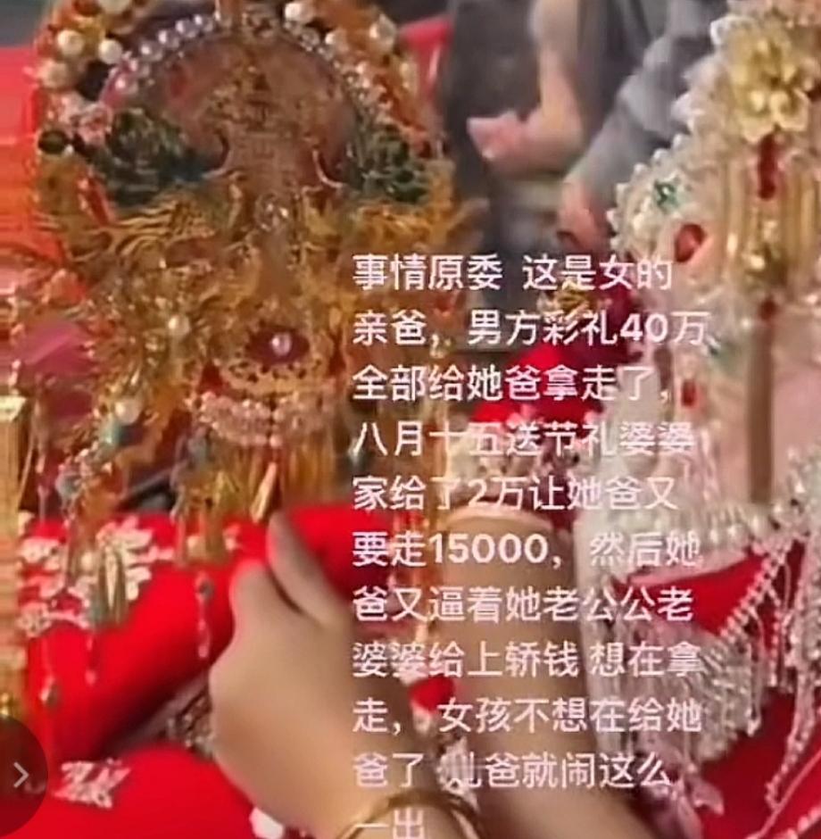 江苏这个姓夏的男人这下出大名了! 近日,江苏一名夏姓男子的所作所为在网络上掀起轩然大波,其以爱为名行敛财之实的丑陋嘴脸,不仅撕碎了亲情的温情面纱,更让“父爱”二字蒙羞。 据了解,该男子在女儿出嫁时,不仅全额拿走了男方40万元彩礼,更在中秋送节礼时,从亲家给的2万元中强行索要1.5万元。 当女儿不愿再让公婆支付“上轿钱”时,他竟当众撒泼闹事,将嫁女完全异化为一场赤裸裸的金钱交易。 彩礼本是传统婚俗中男方对女方家庭的感谢与尊重,如今却成了某些人榨取利益的工具。40万彩礼、1.5万节礼钱,再到变本加厉索要的“上轿钱”,在这位父亲眼中,女儿的幸福似乎远不及冰冷的钞票重要。 他无视女儿的为难与委屈,不顾亲家的感受,将亲情绑架在利益的战车上,步步紧逼,丑态百出。 “虎毒不食子”,而这位父亲却将女儿的婚姻当作敛财的契机,视女儿的尊严为无物。这种行为不仅严重伤害了女儿的感情,破坏了两个家庭的和谐,更违背了公序良俗和为人父母的基本道义。在他的字典里,没有“疼爱”,只有“算计”;没有“成全”,只有“索取”。 婚姻的基础是爱情与尊重,而非金钱的堆砌。这位夏姓男子的所作所为,不仅得不到真正的利益,反而会永远失去女儿的信任与亲情。 我们谴责这种将女儿当作“摇钱树”的卑劣行径,更呼吁社会摒弃这种畸形的婚俗观念,让亲情回归本真,让婚姻远离铜臭。 江苏 彩礼