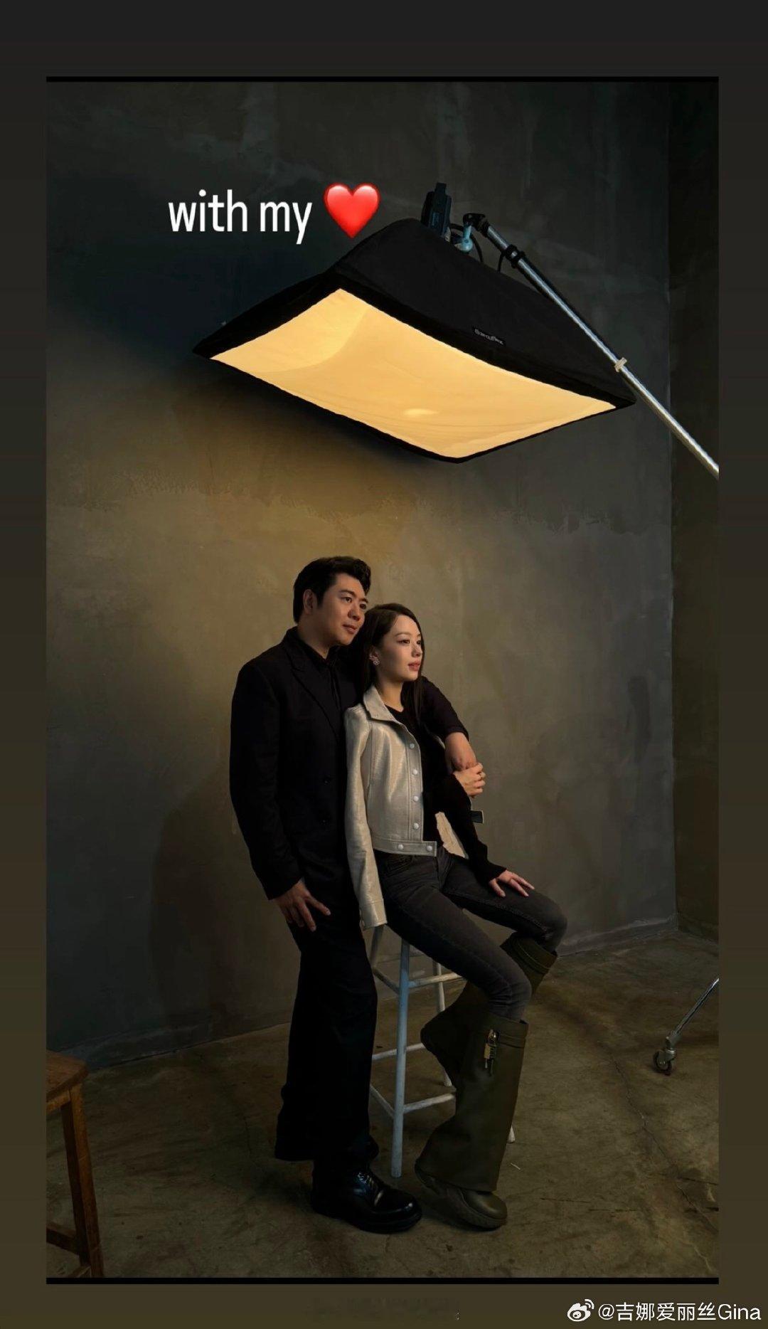 吉娜晒和郎朗搂肩合照晒和郎朗搂肩合照,配文:“withmylove”,好甜