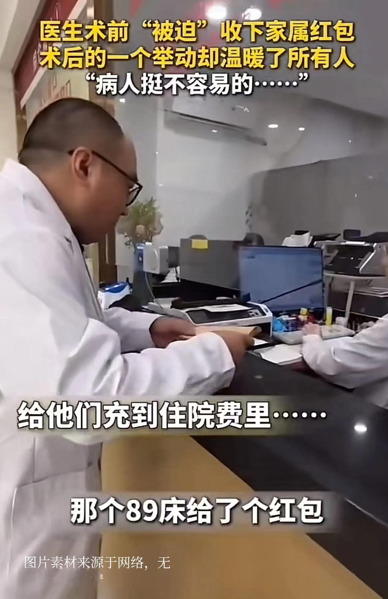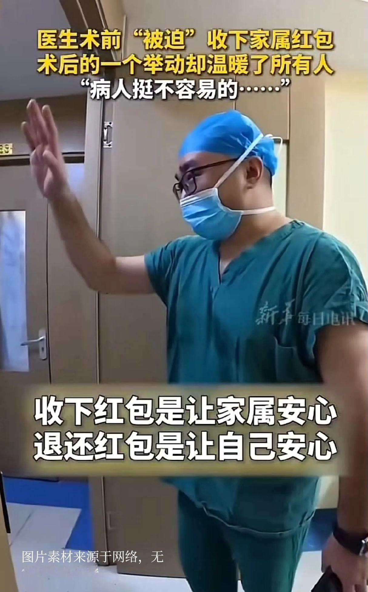 医生收下万元红包没推辞,术后掏出一张纸,家属当场哭了 北京朝阳医院最近出了件暖心事,骨科赵会主任把患者家属硬塞的一万块红包,悄悄变成了住院费。这波操作没有惊天动地,却让见过的人都忍不住夸一句“这才是好医生”。 赵会在朝阳医院骨科是出了名的“一把刀”,专攻疑难杂症,外地患者坐高铁来排队,等上三个月都愿意找他手术 。那天,一位糖足患者的家属攥着个黑塑料袋,在他办公室门口来回踱了三趟,最后像是下定了决心,推门进去就把袋子往桌上一搁,声音发紧:“赵主任,您多费心,这钱您务必收下” 。 赵会打开袋子一看,一万块现金码得整整齐齐。他瞬间就懂了——这又是家属的“术前焦虑”,总觉得不塞点钱,医生就不会尽全力。这种场面他从医二十多年见了不下五十次,心里又涩又无奈,但没当场拒绝,只是沉稳住说:“您放心,手术我一定拼尽全力” 。 家属松了口气走了,赵会拿着钱转身就往收费处跑。“89床的,家属刚给的红包,直接充住院费里”,他跟工作人员交代完,特意要了张收据攥在手里。收费处的人都见怪不怪了,这已经是今年第七次帮他办这事儿 。 他没急着把收据送回去,知道现在给,家属反而会瞎琢磨,怕是不是嫌少,或是不愿好好做手术。揣着收据,赵会一头扎进了手术室。这台糖足手术难度不小,患者足部溃烂严重,稍有不慎就可能截肢,他带着团队足足忙活了五个小时,精细清创、重建血运,才总算保住了患者的脚。 直到患者被平稳推出手术室,家属悬着的一颗心落地了,赵会才从白大褂口袋里掏出那张被捂得温热的收据递过去。家属愣了几秒,看清“预缴金”三个字和金额时,眼泪一下子就砸在了纸上——这可是他们从外地来京求医,在牙缝里省出来的血汗钱 。 “收下红包是让你们安心,退回去才能让我问心无愧。”赵会说得坦然,“你们来北京看病不容易,租地下室一天都要八十块,术后还要康复大半年,每一分钱都得花在刀刃上” 。 其实在老百姓心里,总免不了有“送红包才踏实”的念头,好像这成了手术前的“规定动作”。但赵会用行动戳破了这种误解:真正的好医生,从来不是靠红包“驱动”的。就像有老患者说的,赵主任给人做关节置换,不光没收红包,术后天天查房比家属还勤快 。 现在这张收据都成了医院廉洁教育的活教材。赵会还是天天穿着白大褂泡在手术室里,他没做什么惊天动地的大事,可就是这份“收红包为安家属心,退红包为守自己心”的实在,让大伙儿看见了医者仁心的真模样。这样的医生,谁能不敬佩?