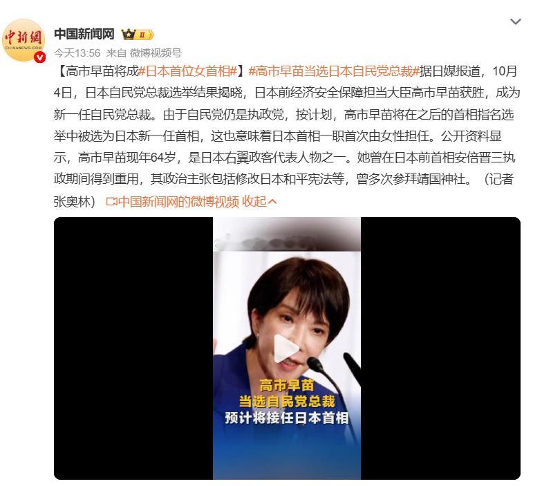 高市早苗或成日本首个女首相,热点观点