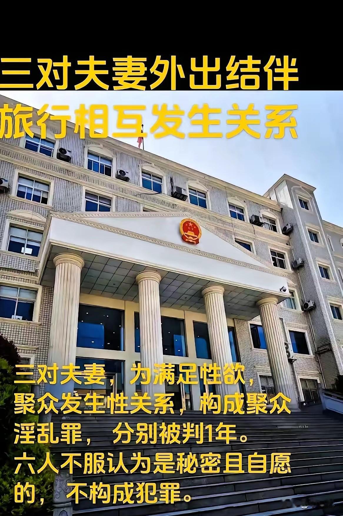 三对夫妻私下交换伴侣,本以为你情我愿就没事,结果全被判了!最近某地法院审理了一起特殊案件:三对夫妻为寻求刺激,约定共同发生性关系,最终因聚众淫乱罪各被判刑1年。 一审法院强调,只要存在"聚众"行为就构成犯罪,是否自愿、是否私密都不影响定罪。三对夫妻不服判决提出上诉,但再审法院维持原判,指出这种行为本身就违背社会公序良俗,破坏家庭伦理。 这个判决引发思考:即便是成年人私下自愿的行为,一旦触及法律红线,同样要承担后果。法律守护的是社会底线,不会因为"自愿"就让步。 你怎么看这件事?支持法院的判决吗?在"个人自由"和"公序良俗"之间,你觉得界限应该划在哪里?欢迎在评论区分享你的观点!