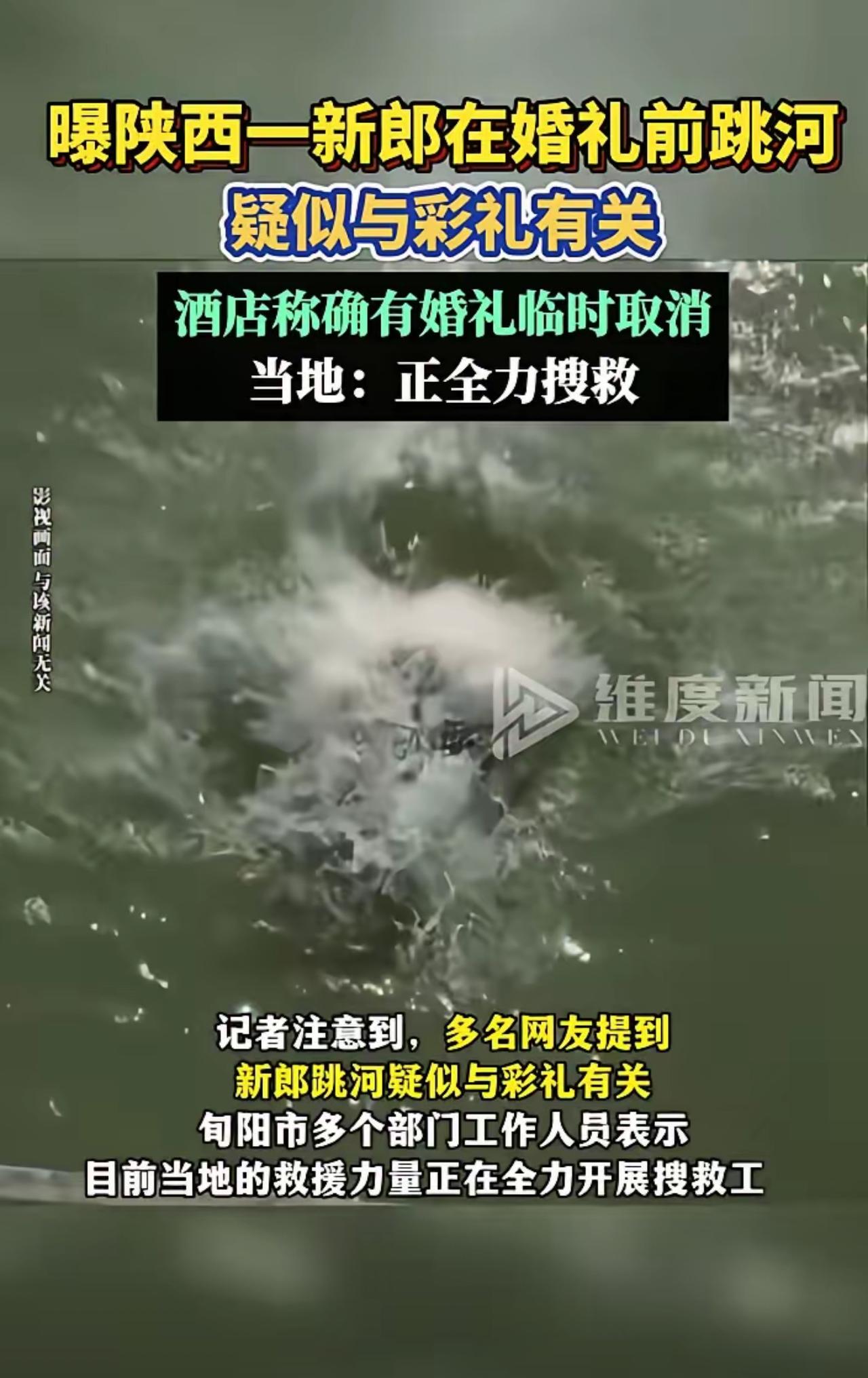 29岁新郎婚礼当天跳河:2万下车费压垮他,可婚姻哪能比命金贵? 真的太揪心了!29岁新郎从婚礼酒店跑向旬河大桥,没半点犹豫就跳进6米深的汉江——就因为婚车上的新娘临时要2万下车费,不给就不下车。 谁能想到这2万成了压垮他的最后一根稻草?家里早就在西安备了婚房,还掏了20万彩礼,杂七杂八的开销早把普通家庭逼到了墙角。他急着给朋友打电话借钱,可没借到,又不想再逼年迈的父母,竟一头扎进了死胡同。 死都不怕,为啥就不能选退一步?这婚大不了不结,彩礼能要回,日子总能慢慢过。可他这一跳,留下的只有父母后半辈子的眼泪。你们说,要是当时他能多想想"命比婚姻重要",会不会就有不一样的结局?