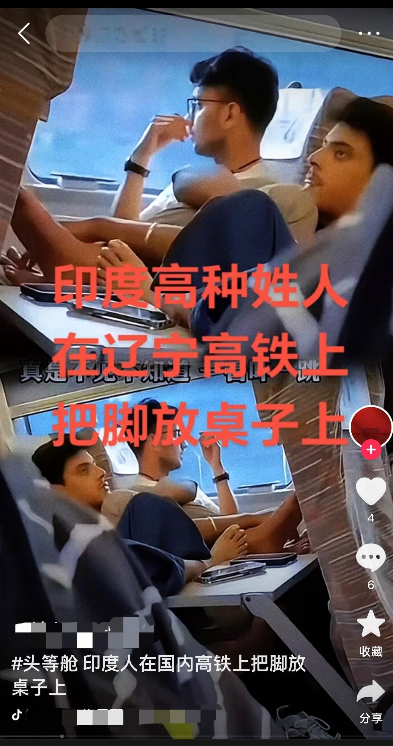 印度人高铁上脱鞋踩桌板?比没素质更刺眼的是“双标”! 刷到有人吐槽印度乘客在高铁上的操作,真是开了眼。脱鞋把脚翘上桌板,咖喱味混着喧哗声飘满车厢,前排乘客忍不了提前下车。更气人的是乘务员就在旁边,却假装没看见。 总有人说“环境能改变人”,可中国高铁这么整洁的环境,照样有人把陋习带进来。高种姓女博主拿着中间座票硬要靠窗位,大声喧哗还嫌票价贵,这哪是环境的问题,分明是没把公共礼仪放眼里。 但最让人膈应的不是个别游客,是“内外有别”的默许。中国乘客小孩哭闹都可能被指责,外国游客违规却没人管,这哪是包容,是丢了规矩。 文明从来不分国籍,讲规矩才该是“通行证”。