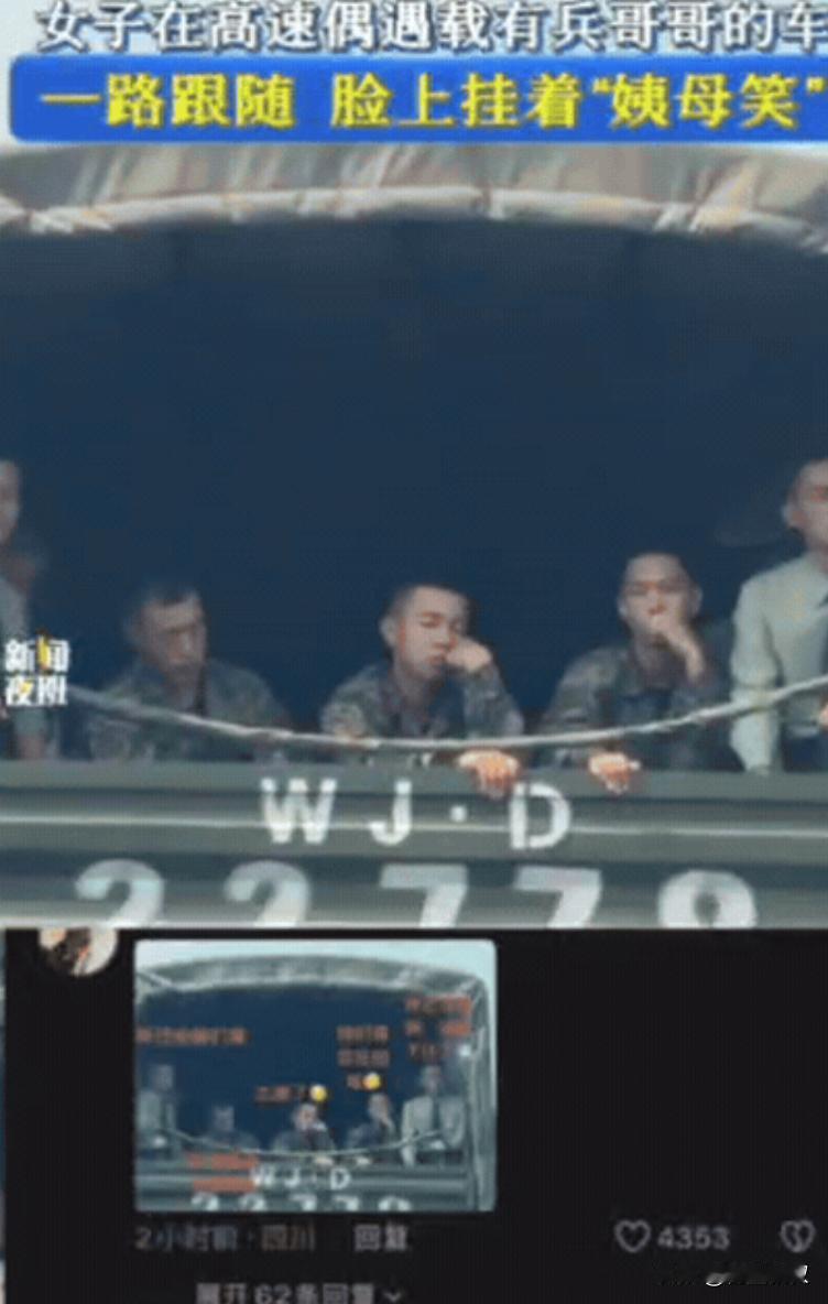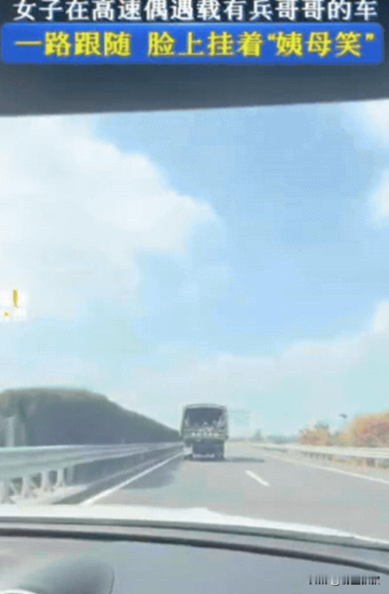 “嘴角连AK都压不住了!”女子开车上高速,发现前方车辆挡道,可她不仅不生气,还露出了“姨母笑”,甚至还忍不住咽口水,原来,前方的车上载有兵哥哥,看得女子两眼放光,选择一路跟随,网友:要是没咽下去,口水都能流一地! 上高速这事儿,大伙儿估计都有一样的感受,除非是特意开着车兜风,不然谁不是盼着一路顺顺当当,别被慢车挡道,也别遇上堵车,就拿我自己来说,上次周末开高速去外地看朋友,本来算好了时间,结果前面有辆小轿车磨磨蹭蹭的,我心里都忍不住有点急,盯着后视镜琢磨着啥时候能超过去。 前阵子刷短视频,刷到个高速上的片段,跟咱们平时遇到的情况完全不一样,看的时候我自己都忍不住跟着笑,觉得又可爱又暖心,视频是从开车大姐的视角拍的,应该是副驾的人帮忙录的。 一开始镜头里就看见前面有辆军绿色的卡车,速度不算快,就那么稳稳地开在中间车道上,大姐一开始好像也有点想超,方向盘轻轻动了下,眼睛往旁边车道扫了扫,估计是在看有没有超车的空间。 结果没等她打转向灯,镜头稍微拉近了点,能看清卡车车厢里的人了,好家伙全是穿着迷彩服的兵哥哥,一个个坐得笔直后背挺得溜直,哪怕隔着点距离,都能感觉到那种精神劲儿,跟咱们平时见的路人完全不一样。 就从看清人的那一刻起,大姐的反应立马变了,本来还带着点急的表情,一下子就松下来了,嘴角先慢慢往上挑,一开始还想绷着,可能觉得在开车呢,别太失态结果没绷两秒,那笑就藏不住了,越笑越明显,眼睛都弯成月牙儿了,那就是咱们常说的 “姨母笑”,特别温柔,还带着点藏不住的小激动。 然后镜头里能看见她下意识地抿了下嘴,接着悄悄咽了口口水,大概是激动得有点不知所措,还抬手悄悄抹了下嘴角,生怕副驾的人笑话似的,可那眼神就跟钉在前面卡车上似的,连旁边车道有空位能超车都忘了。 后面的画面更有意思,旁边有好几辆车嗖嗖地从旁边超了过去,有的还按了下喇叭,估计是嫌前面的卡车慢,耽误自己赶路,但大姐一点没动,就稳稳地跟在卡车后面,保持着安全距离,双手把着方向盘,眼睛时不时就往前面车厢瞟一眼,生怕漏看了什么。 有时候镜头晃了下,好像是副驾的人跟她说话,她也没回头就摆摆手,嘴里好像还小声念叨着什么,看那样子,八成是在说 “别吵,让我多看看兵哥哥”。 就这么一路跟了大概十几分钟,直到前面的卡车要下高速出口,打了转向灯,大姐才恋恋不舍地也打了转向灯,往另一个方向走,走的时候还特意放慢了点速度,回头看了一眼卡车的方向,嘴角还带着没散的笑。 下面评论区里全是乐呵的,有人说 “大姐这笑,真是嘴角连 AK 都压不住了”,我觉得这话太形象了,不是说笑得多夸张,龇牙咧嘴的那种,就是那种从心里冒出来的高兴,想藏都藏不住,比什么都真实。 还有人调侃 “要是没咽下去,口水都能流一地”,其实就是逗她那点小激动的样子,谁看了不觉得可爱啊?毕竟换咱们自己,要是在高速上碰见一群坐得整整齐齐、精神抖擞的兵哥哥,估计也会放慢速度多看两眼,心里忍不住有点小欢喜。 说这种欢喜不是没原因的。平时咱们在新闻里看兵哥哥们抗洪抢险,浑身是泥还在扛着沙袋往前冲,冬天守边疆,零下几十度的天,脸冻得通红还站得笔直,哪里有危险,他们总是第一个冲在前面。 咱们心里都清楚,咱们能安安稳稳开高速、过好日子,能周末带着家人出去玩,都是他们在背后扛着事儿,替咱们挡住那些危险。所以真到现实里看着他们了,那种亲切感和敬意就忍不住冒出来,就像看到自家特别靠谱的哥哥、弟弟似的,根本没法不喜欢。 (信息来源:新闻夜航2025-9-30——女子在高速偶遇载有兵哥哥的车,一路跟随,脸上挂着“姨母笑”。)