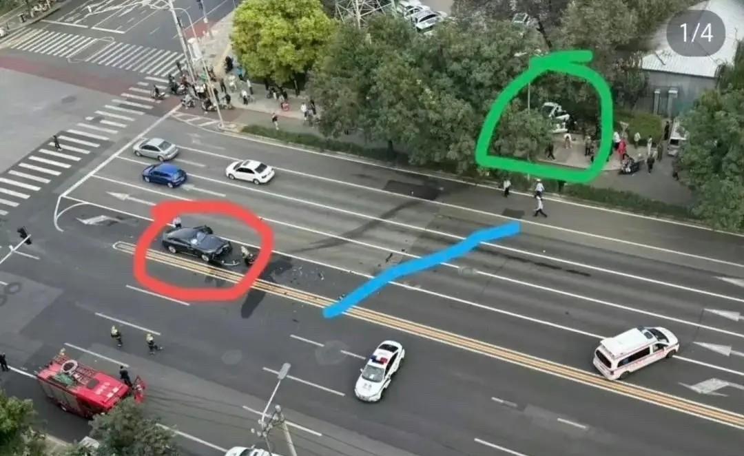 今天下午,陈震车祸现场图。看照片,陈震驾驶的闪灵把一辆比亚迪宋撞到旁边马路绿化
