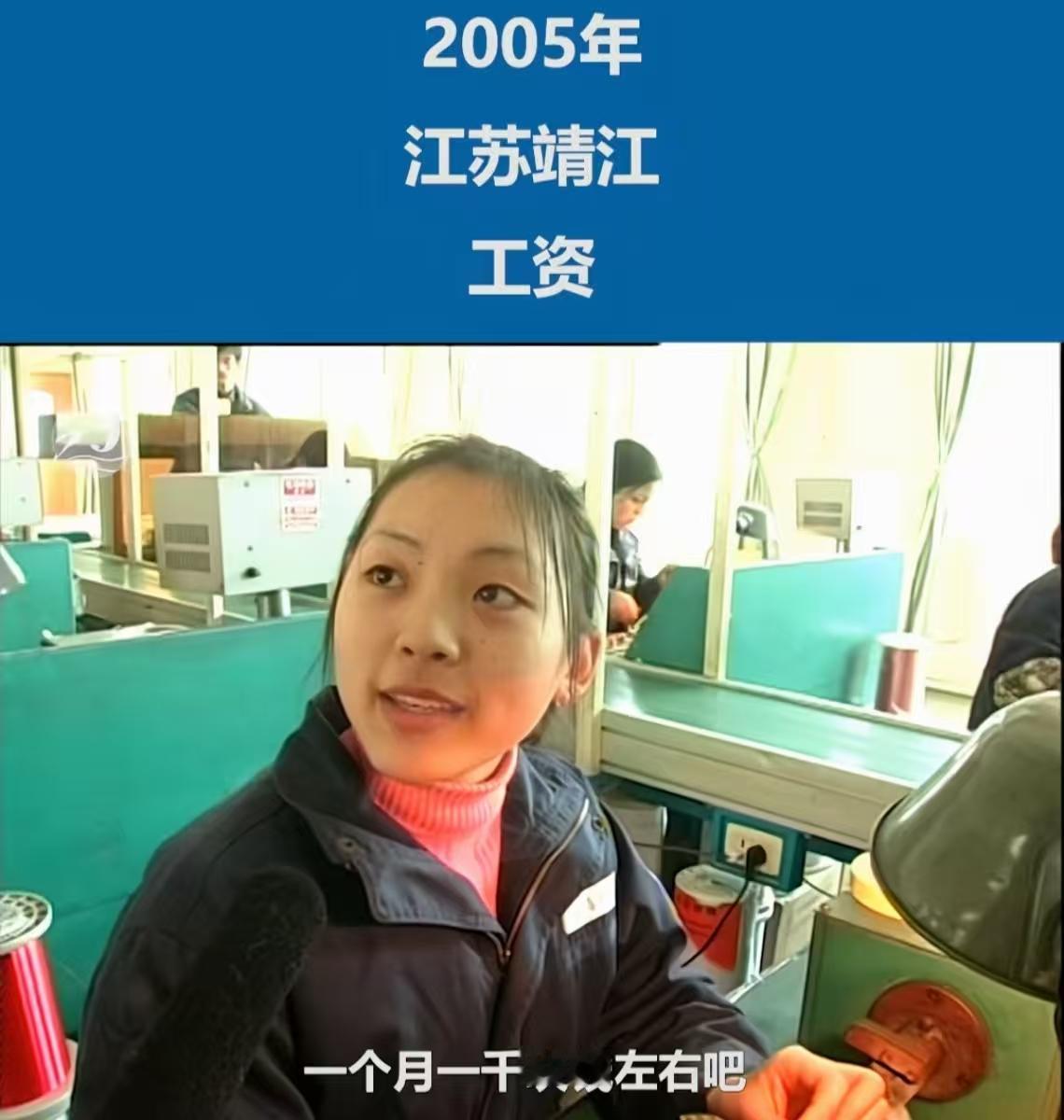 20年前,在靖江,你的工资是多少?1000块一个月多,还是少? 今天,在头条上看到了一张20年前的老照片。是江苏台的一个记者去采访当时江苏泰州靖江的一家纺织工厂的工人,主要是问她的生活和待遇如何。 照片上,是一张略显稚嫩,但充满着朝气的女孩子的脸,年龄看上去应该在20岁左右吧。问她在工厂里的生活,她坦言有吃有住,感觉工厂对她们还是不错的。 至于工资待遇方面,她说大概一个月到手能有个1000元左右,似乎挺满足的样子。要知道那是在2005年的靖江,我们无法用今天的标准和眼光来看待这份工资。 不知道,屏幕前的您,当年了解这样的境遇吗?20年的2005年,您又是在什么地方工作?一个月的待遇大概是多少?照片里的这个小姑娘当年在靖江,能有什么样的生活水平?欢迎在评论区留下您的足迹!