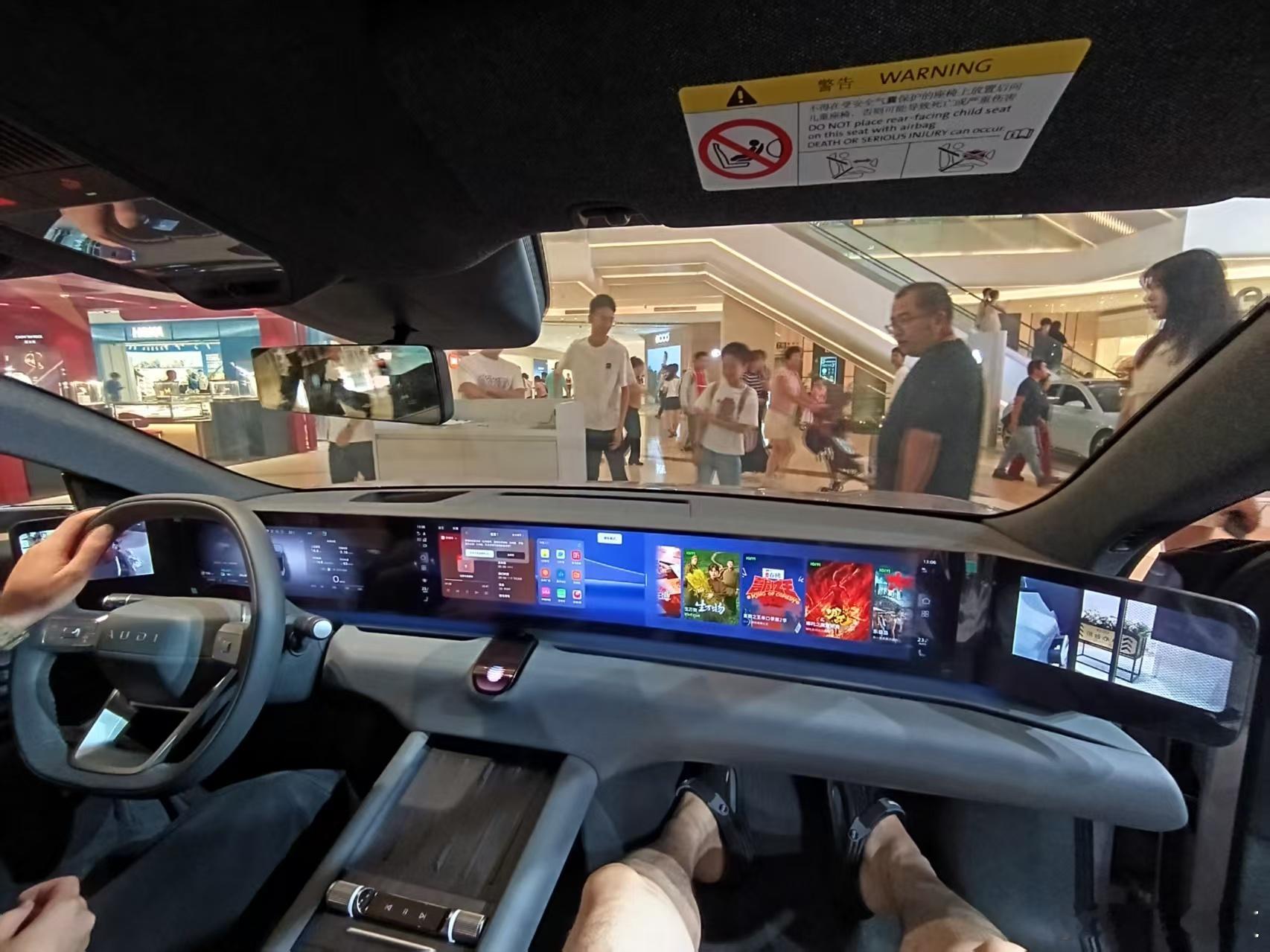 奥迪E5外观造型很耐看,就是内饰这一圈屏幕有点儿难绷,有种被360弹窗植入的感觉,距离屏幕也稍远,开车时触摸屏幕不费劲吗[吃瓜] ​​​