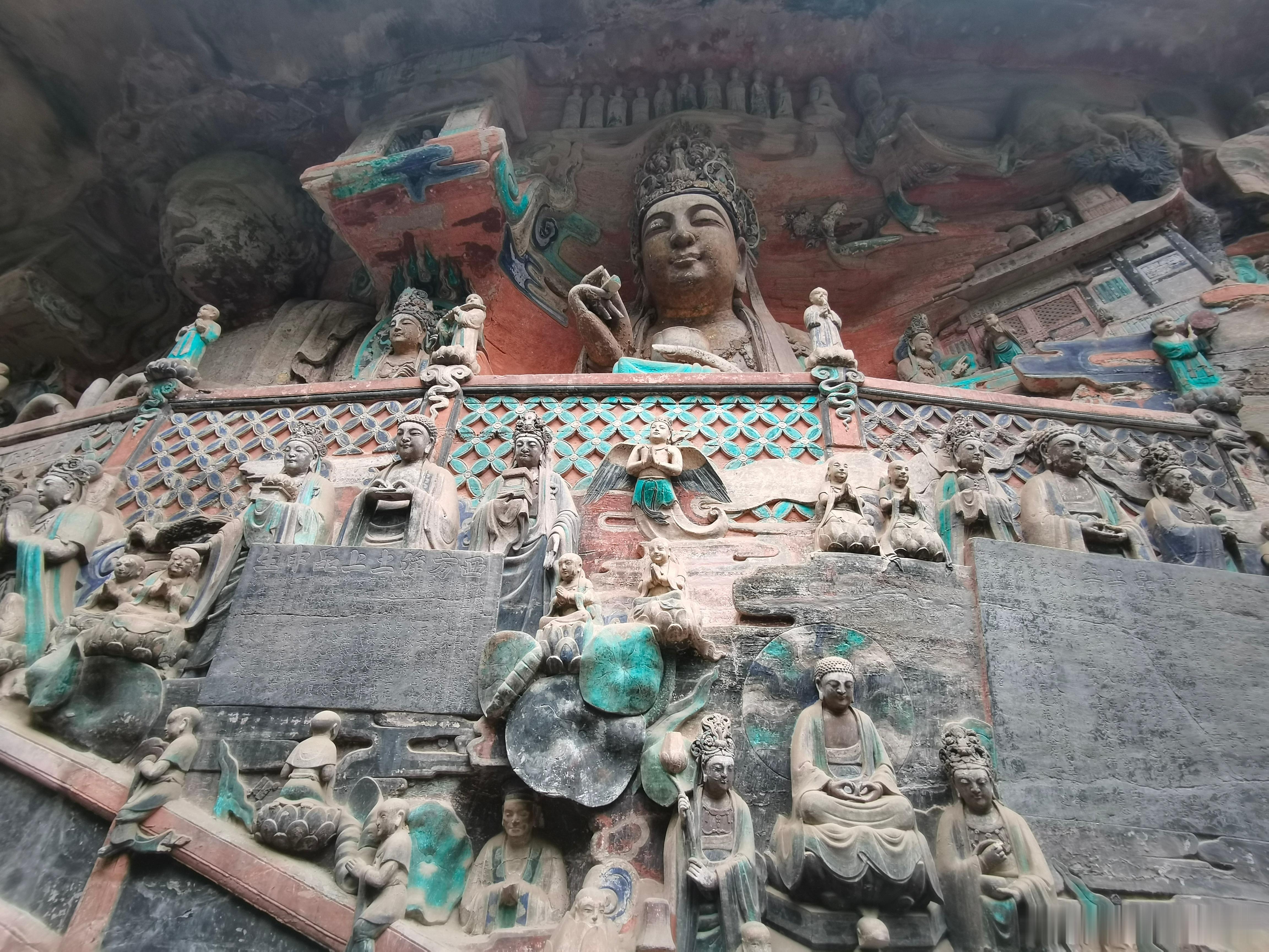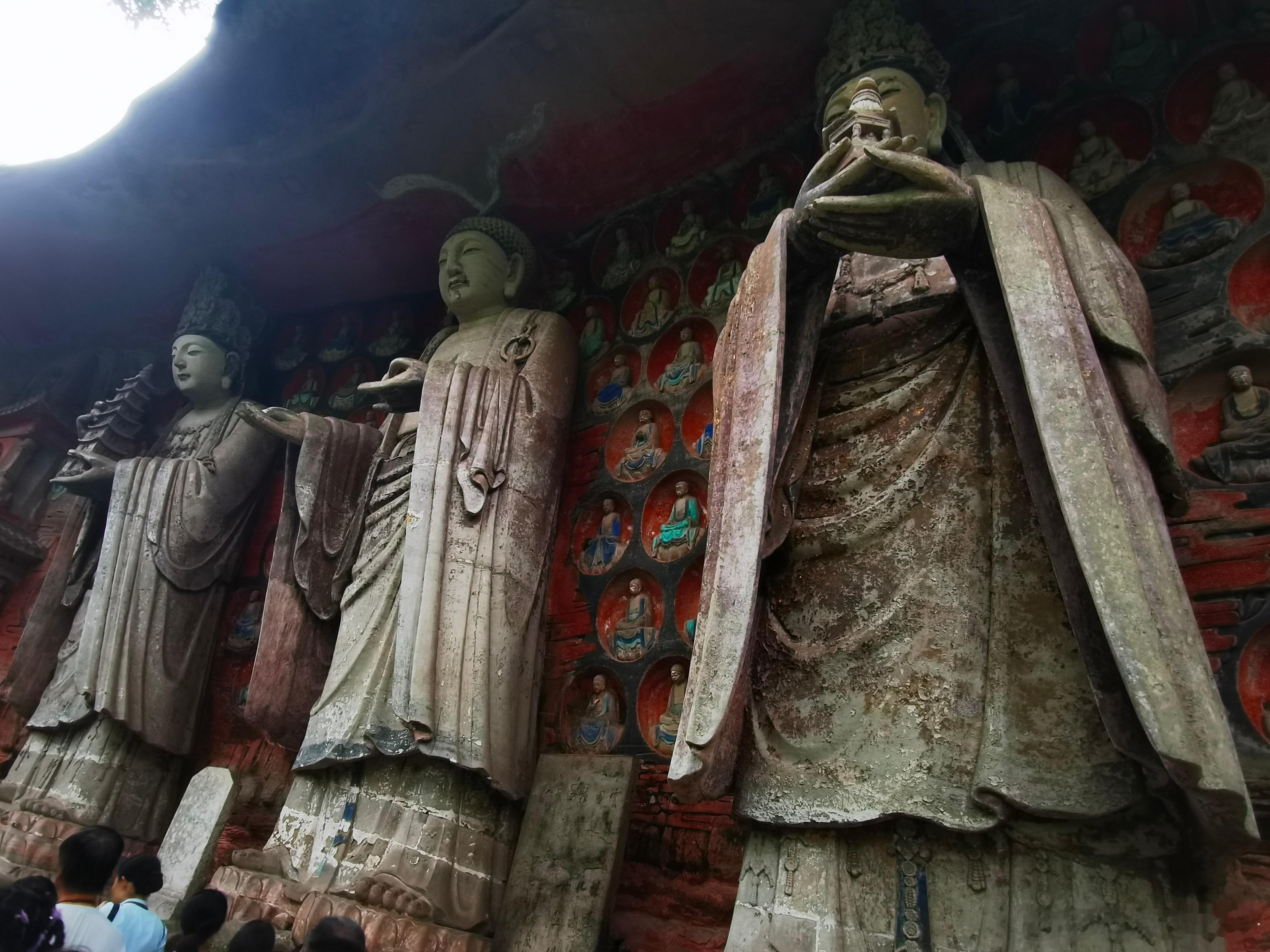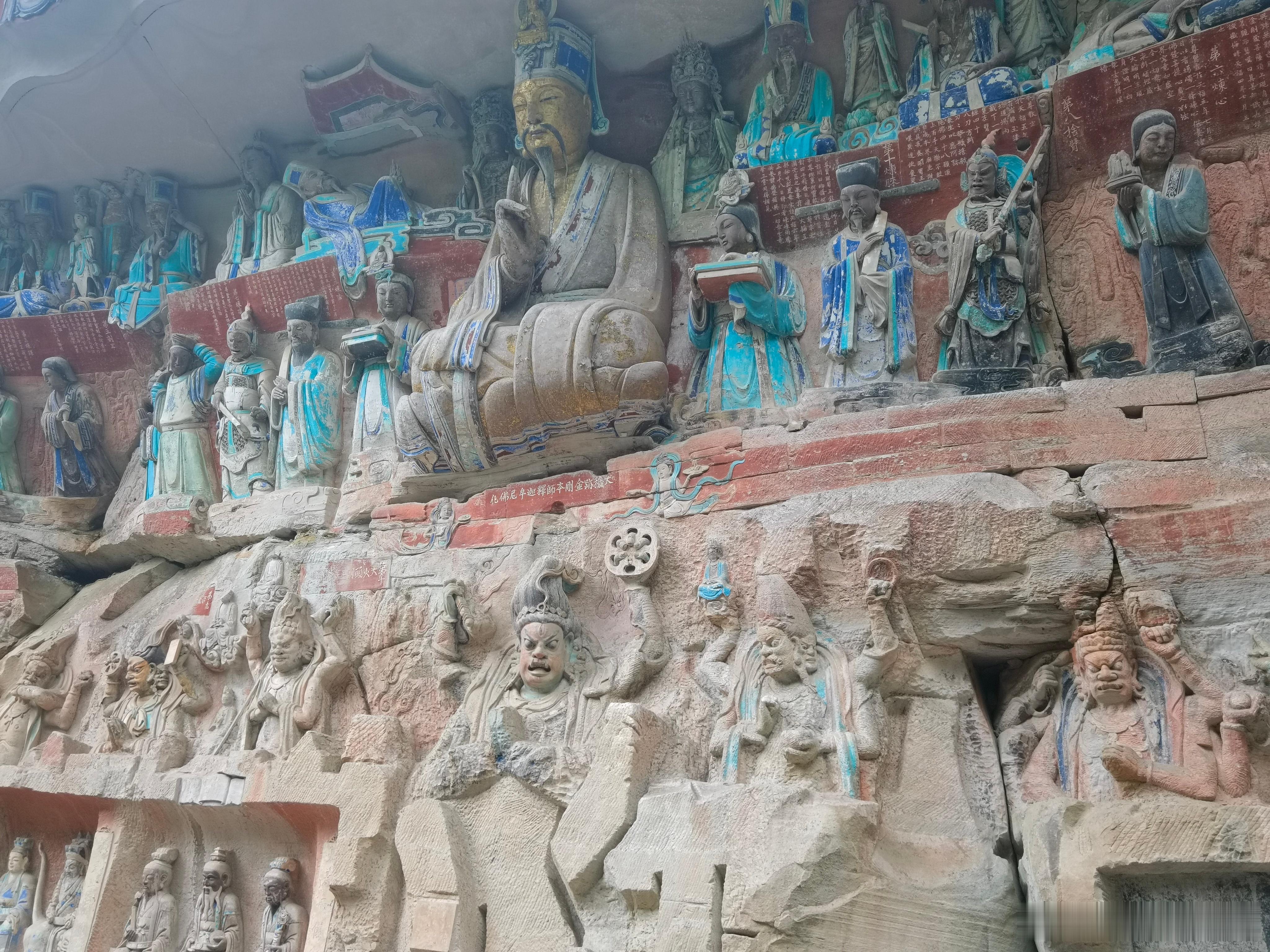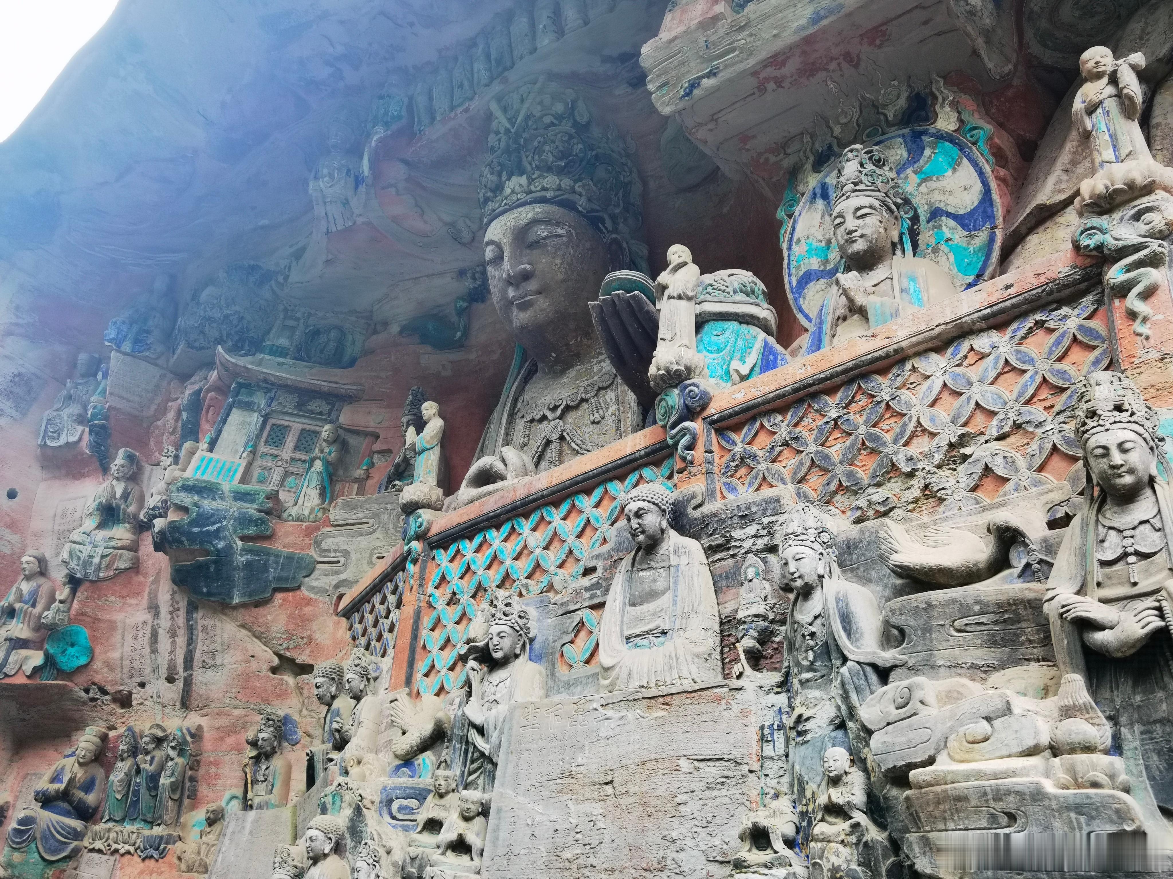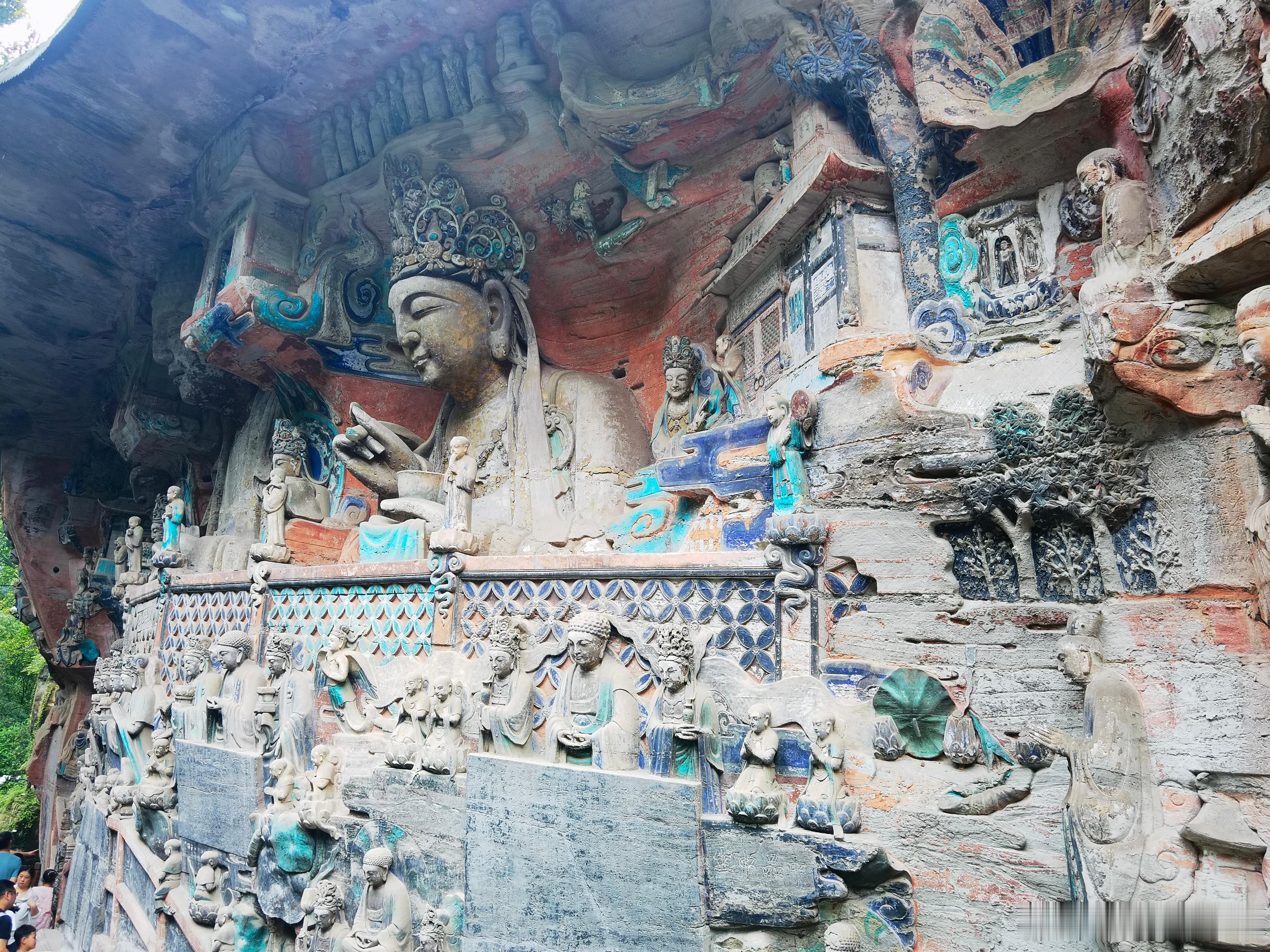 今天来大足石刻被惊艳到了,色彩鲜艳,比洛阳龙门更有震撼,艺术造诣可能不及敦煌莫高