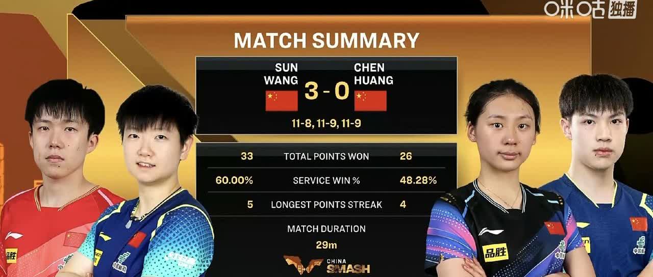 恭喜孙颖莎王楚钦第五次拿到大满贯冠军[赞][赞][赞] 这是本场赛事的第一个冠