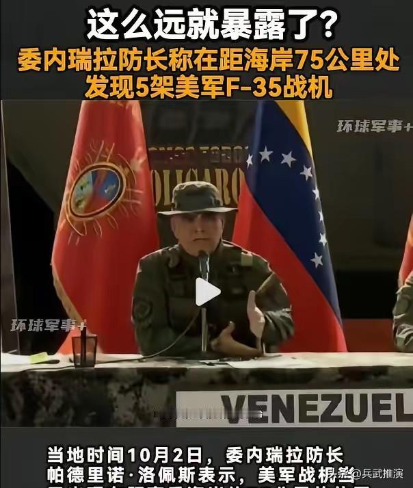 美国F35千公里抵近委内瑞拉,最后75公里功败垂成 美国5架F35费劲飞了上千公里靠近委内瑞拉,结果在离委海岸就剩75公里时被发现,硬生生被逼得返航,差一步就没成功。 当时委内瑞拉国防部长洛佩斯直接发了严正警告,美军没敢再往前冲,只能掉头回去。现在还不清楚这几架F35具体是啥型号,从哪儿起飞的,但早有消息说,一个月前美国把10架F35部署到了波多黎各的前罗斯福路兹军事基地,这个基地离委内瑞拉海岸线有1050公里。 美军用的是返程加油的法子,从这基地起飞,能打到委内瑞拉内陆300到600公里的地方。另外,两个月前美国还有支黄蜂级舰队停在加勒比海,离委海岸最近时才50公里,舰队的两栖舰上还能放F35B。 按美军的战术,这两个地方是配合着来的——波多黎各的基地负责“穿透性打击”,先往里面突;黄蜂级舰队再跟上去“补锤”。可这次5架F35才到75公里就被发现,说明美军这穿透性打击根本没成。 有网友说,而且这也不是委内瑞拉第一次盯上美军战机了,2020年4月的时候,他们的雷达就锁定过美国的F22。 这都过去五年了,委内瑞拉的警戒能力肯定更熟练,美军想偷偷靠近,哪有那么容易。 笔者认为,本来美军想靠着F35的优势搞突袭,结果在最后关头栽了,不仅没达成目的,还暴露了战术,这下想再搞小动作,委内瑞拉肯定盯得更紧了。 对此,你怎么看呢?