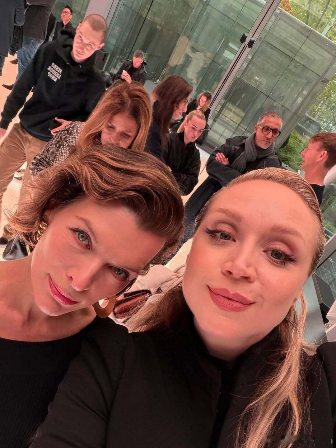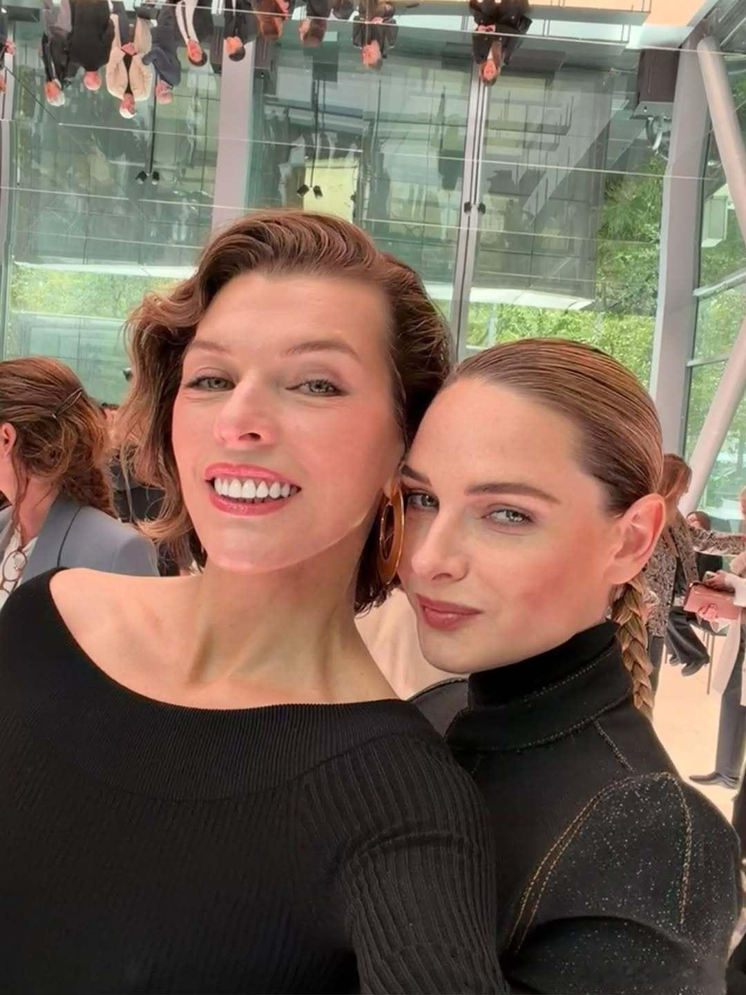milla jovovich米拉乔沃维奇在巴黎时装周期间出席观看Alaïa品牌的时装秀,并和Rebecca Ferguson丽贝卡弗格森碰头,弗姐在米拉身旁好妹呀