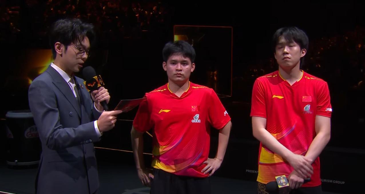 王楚钦/林诗栋拿下男双冠军的采访, 我没搞明白, 明明这主持人会英语和汉语, 他为什么配个女翻译呢? 再告诉你们一个秘密, 其实头哥英语也非常好, 不过主持人每次还让翻译, 给头哥翻译一下,哈哈 直接把我搞晕了