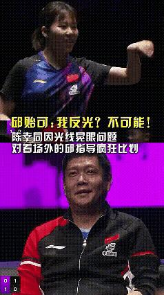 陈博士真牛,居然能凌驾于规则之上叫停了比赛! 这个球都和莎莎打了四个回合了,突然停下举手叫停比赛,真是前所未有! 说白了就是同同认为她被被闪光灯干扰到了。 裁判听不懂同同说的啥,一脸懵逼,莎莎也是满脸无奈。 按照规则根本没有允许比赛停下的一说,发现闪光灯干扰可以提前说出,那有正打着就停下比赛呢? 最后裁判只能要求重打,这也算破了天荒头一遭。 以前同同有过这样的经历,说过邱指的黑衣服反光折射晃眼,影响了她的比赛。 今天同同和莎莎的比赛,她的这个头开的有点过分了。 是不是以后只要运动员自己感觉受到任何干扰,就可以马上中断比赛重打呢? 还有球不顺时,也可以随心所欲,即使没有遇到任何干扰也可以叫停比赛,反正没人知道自己是否真的受到了干扰! 总之同同的这个做法极为不妥,和张本智和那个医疗暂停有异曲同工之处。 大家觉得同同的这个暂停比赛方式可取吗?