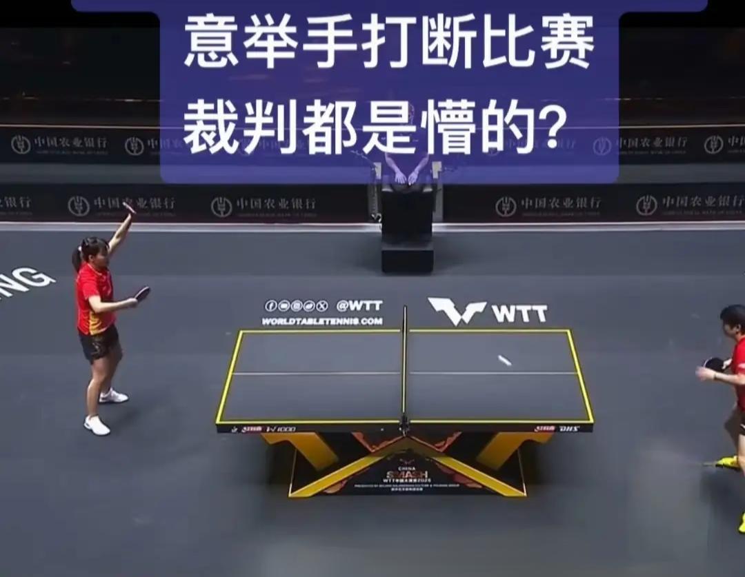 陈博士真牛,居然能凌驾于规则之上叫停了比赛! 这个球都和莎莎打了四个回合了,突然