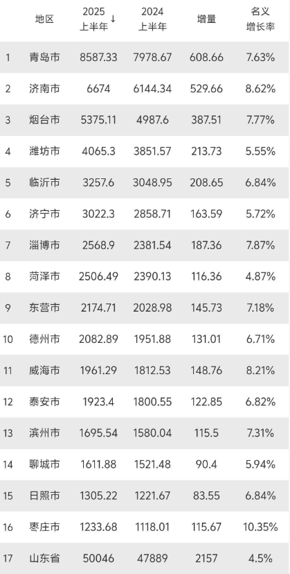 2019年的广东,2020年的江苏,先后跨过10万亿GDP的门槛,5年多后的2025年,山东确定成为全国第三个GDP超10万亿的经济大省,下一个则将是明年的浙江。 届时,以粤苏鲁浙4大10万亿GDP经济大省和京沪两大5万亿GDP超级都市领衔,我国区域经济发展的头部新格局将更加稳固,带动作用也将更加显著。 同时,山东率先进入10万亿行列,也为传统工业大省转型、北方经济高质量发展提供了莫大的信心与助力。 经济大省之间的真实差距 仅以GDP总量来看,11个超过5万亿元的省市是支撑起中国经济版图的头部力量。 广东、江苏、山东、浙江4个经济大省实至名归,粤苏正朝着15万亿GDP努力,鲁浙今明两年将先后站上10万亿,四川、河南、湖北在6-7万亿纠缠,福建领先于上海、湖南、安徽、北京这一档5万亿省市——可以说,经济大省、产业大省的梯队态势非常明显,每一个梯队都有彼此对标的目标。 换一个角度来看,各个省市想要跨越升至上一个层级的竞争范围,难度都很大。现有经济环境下,已经很难出现某个区域颠覆性的跨越式发展。 浙江确实势头更猛、增速更快、活力更强,但超车山东,短期内暂无可能。 山东的底气,从何而来? 关于经济第三省的讨论远不如中国第五城的讨论来得热烈,因为作为事实上的全国第三省,山东的发展态势如同其辖区内的民众性格,不争不抢,踏实稳定。尽管也曾有过说山东经济“大而不强”“活力远不如浙江”的声音,但山东只需让数据说话。2024年,山东GDP增速跑赢全国均线,GDP增量低于江苏,但高于广东。 何况,山东还身处京津冀、长三角、珠三角三大都市圈外的政策洼地,能扛住长、珠三角和北京的跨地域虹吸已属不易。 与广东有一定的外贸依赖度和江苏强劲的科创赋能力相比,制造业是山东的底气。2024年山东的第二产业增加值增速高于广东和浙江,工业根基相当扎实,且有着大而全的产业体系,当年31个制造业大类有29个实现增长。都说山东国企更强、民企差点意思,而2024年山东500强企业里的278家民企实现了与国企差不多的营收。均衡化发展更是山东的优势所在,胶东、省会、鲁南三大经济圈增速相当。内需方面,山东2024年的社会消费品零售总额同比增长6.1%,高于广东的4.8%。 连续9年粮食总产量超过5000万吨,年度农林牧渔业总产值超万亿元,大量农产品转为工业原料,山东的大农业也是其他经济大省艳羡的存在。山东还是全国唯一的海洋强省建设试点,2024年海洋生产总值占GDP比重超20%——能玩转海洋经济的省市,全国目前只有寥寥几个。 以往更多由广东、江苏、浙江刷屏的全产业链优势、创新转化能力等方面,山东近年来已经花大力气改善,并取得了一定的成效。山东汽车产业有着涵盖研发、零部件、整车制造、后市场的完整链条,2024年汽车产业产值突破万亿,新能源汽车增长迅速。国家级重点实验室、高新技术企业和科技型中小企业数量均稳定增长。 山东的后劲,是否充足? 山东的短板在于未来产业、战略性新兴产业的量、质都有不足,这方面的数据,山东有多项只有广东、江苏、浙江的一半左右,差距非常明显。但山东也并非没有底蕴,国家级战略新兴产业集群数量,山东是超过广东排名第一的,国家级制造业单项冠军企业,山东也是第一,专精特新“小巨人”企业排名全国第四。 数字经济方面,山东在工业互联网领域表现出色,但在消费互联网领域相对滞后。山东各个产业领域的头部企业数量,也略低于粤、苏、浙3省。而且,与粤、苏、浙3省民企的全面出击、欣欣向荣相比,山东民企更偏传统色彩一些,效率和业绩都有很大的提升空间。 甚至于,山东均衡的区域发展态势,也被认为一定程度上没能更好发挥资源集聚效应,供养出济南、青岛、烟台3座万亿GDP城市,已经是山东目前的极限,潍坊想要进阶最少还有5年时光。 至关重要的人口方面,山东全省2024年少了42.8万人,几乎没了一个中等县的人口数量,这对消费、创新等领域都存在隐患。虽然2024年济南、青岛的高校毕业生留鲁率大幅上涨,但山东的高端人才净流入率,是经济大省,甚至是产业大省里最低的那一档。