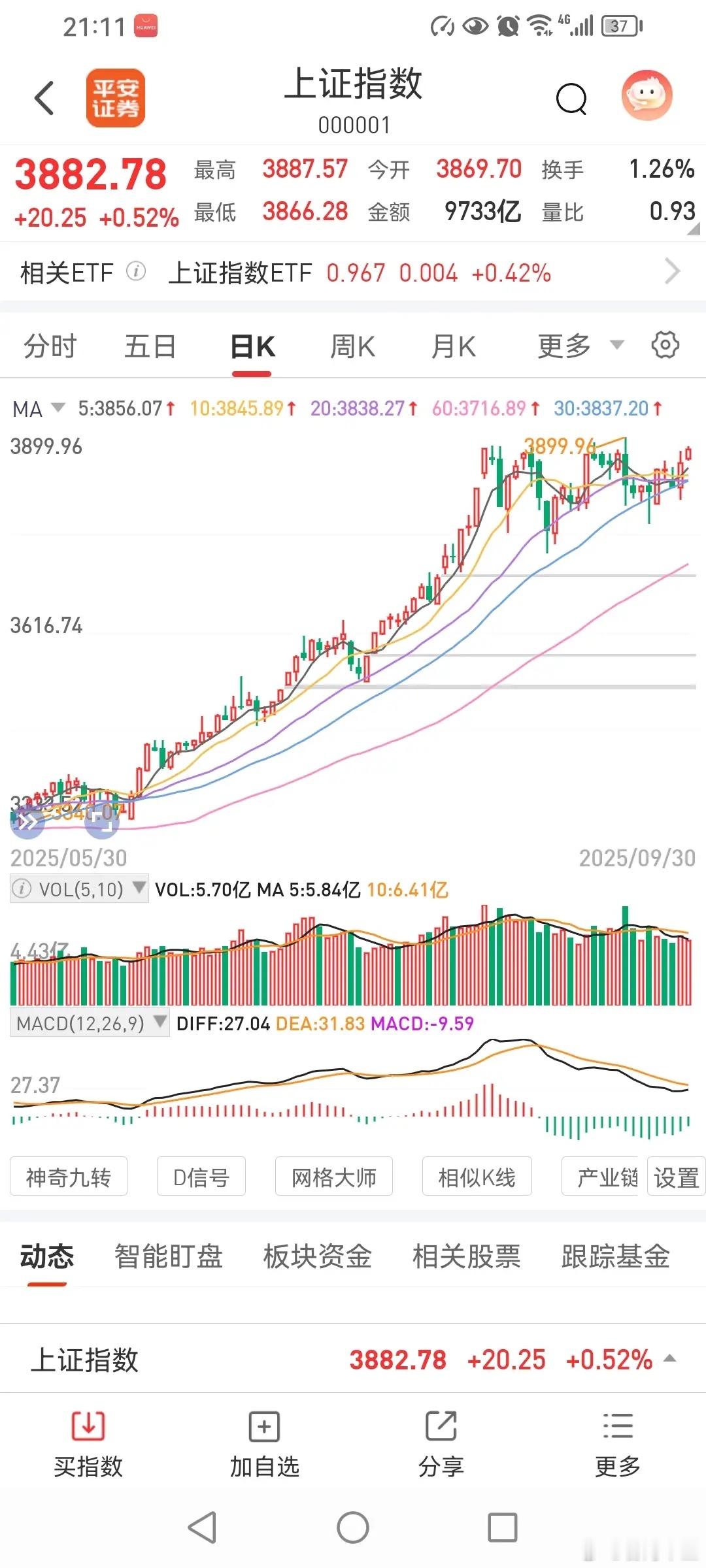 具体来看,9月30日大盘已收于3882点,结合当前趋势,下周开盘后“高开高走”的概率较高。若该走势得以延续,下周大盘有望顺利突破3900点整数关口,进而为10月份向4000点发起冲击奠定基础。