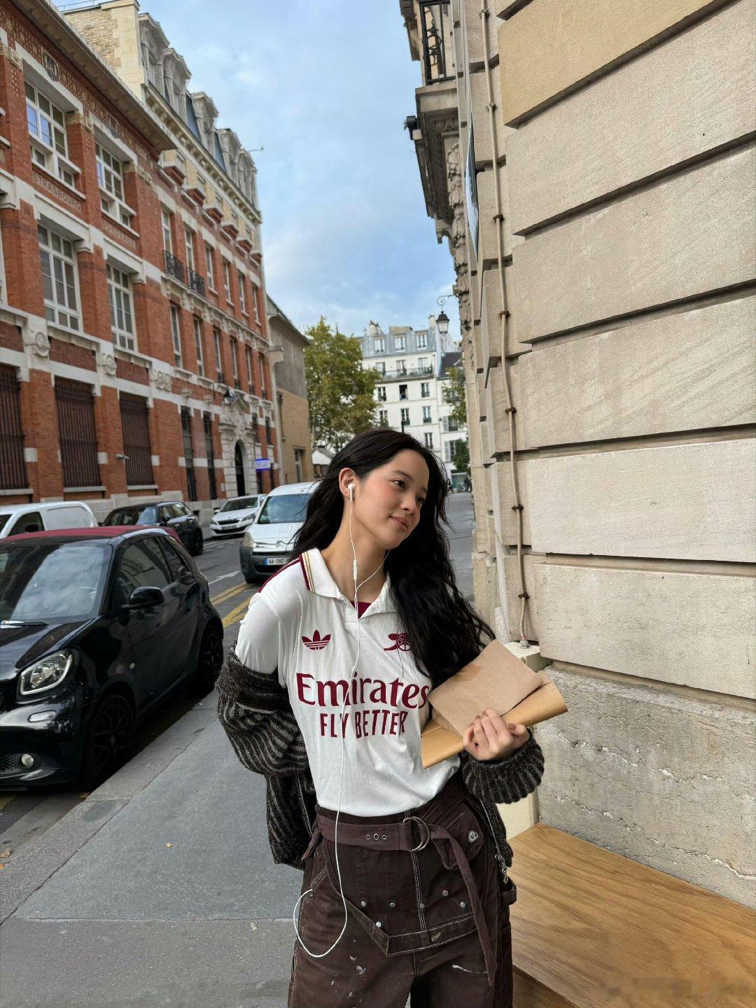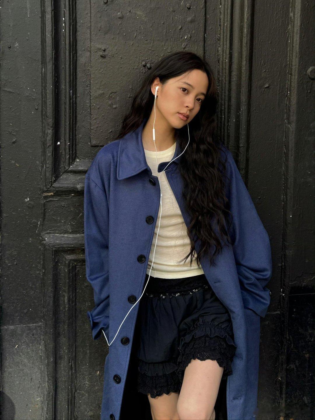 欧阳娜娜耳机到底在听什么 娜比巴黎戴耳机随拍好吸睛!白T恤衬得她清爽自在,耳机却出现在不同场景,难道是在暗示新专辑《The Playlist》?