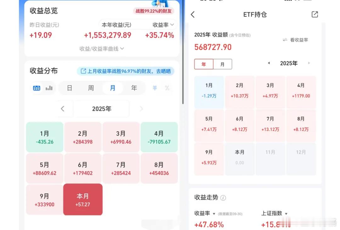 场内ETF账户,今年以来盈利56.9万,收益率为47.68%。