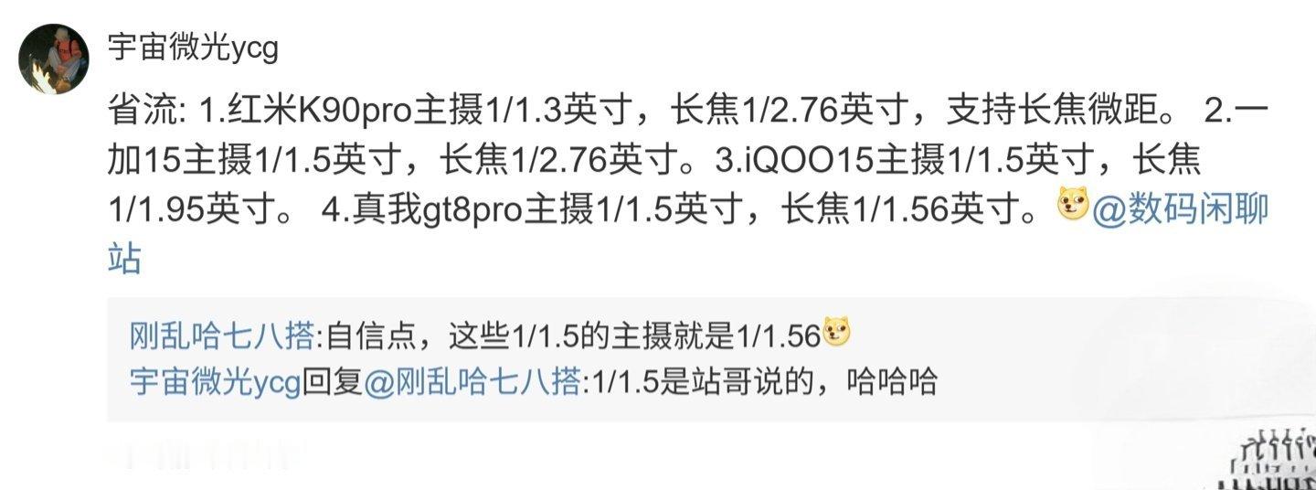结合博主文中暗示和评论区猜测,预计博主所说的这些机型包含小米 REDMI K90 Pro、一加 15、iQOO 15、realme 真我 GT8 Pro。